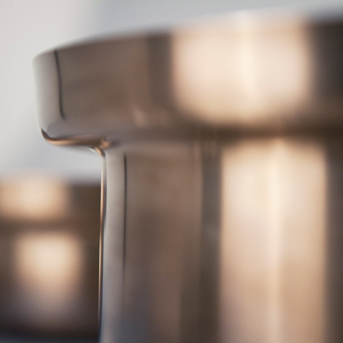 With its distinctive bronze finish and commanding silhouette, the KnIndustrie Foodwear Pot redefines everyday cooking with elegance and performance. Designed by Rodolfo Dordoni, this 26 cm (10.23 in.) pot is more than a kitchen tool—it's a sculptural centerpiece for those who appreciate refined form and reliable function in equal measure in their contemporary kitchen.
