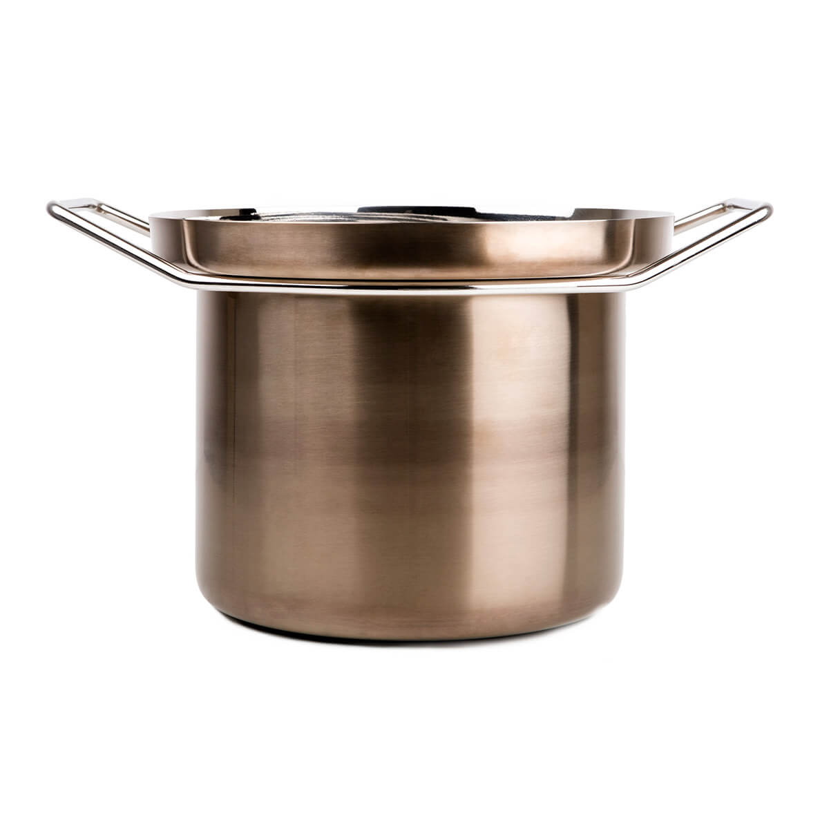 Its sleek bronze exterior elevates it from a simple cooking tool to a striking element of contemporary dining table style. Complementing the most curated KnIndustrie cooking collection, it integrates beautifully into open kitchens, where aesthetics matter as much as efficiency.