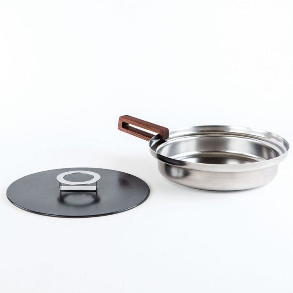 This multifunctional object does more than meet the eye. When placed over a pot, it functions as a minimalist lid, complementing any knindustrie pot or stainless steel casserole with graceful symmetry. When flipped, it transforms into a refined dessert stand, ideal for serving pastries, fruits or savoury creations. It’s one of those kitchen pieces that seamlessly shift roles depending on the moment, always delivering elegance and usability.