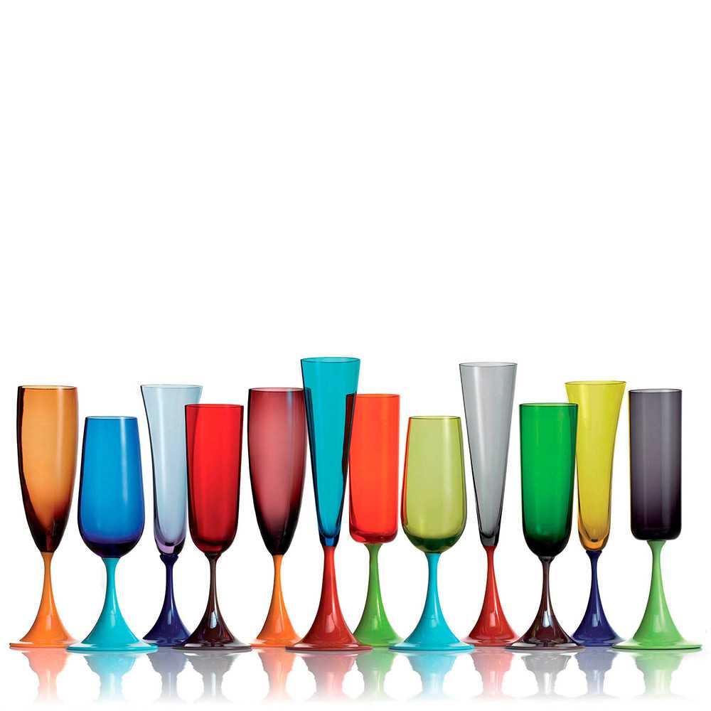 The Guepiere collection, designed by Stefano Marcato for Nason Moretti, leading Italian brand in the production of glasses, vases and design objects handmade in Murano glass, stands out for the liveliness of colors and variety of shapes. The blue and peach Guepiere flute is ideal for tasting champagne and sparkling wines. The handmade flutes become an object with a unique and inimitable design, the perfect element to amaze your guests.