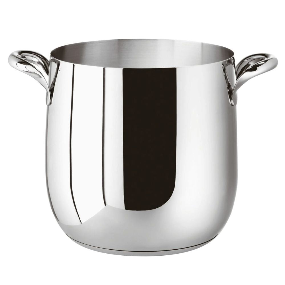 Stock pot from the Kikka collection, designed and produced by Sambonet. The Kikka collection of pots and pans is distinguished by its rounded shapes and fluid lines that bring back the charm of tradition and home cooking, making the pans perfect for any kitchen. Discover the entire Kikka collection and buy your favorite pan.