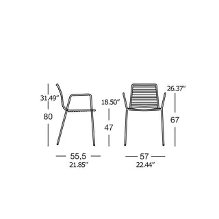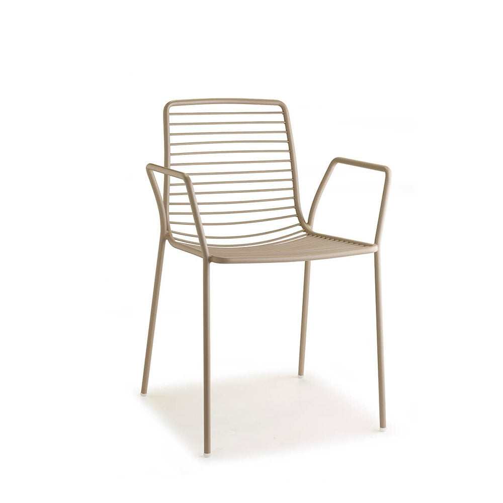 Armchair by Scab Design. For over 50 years, Scab is the 100% Made in Italy brand that becomes a leader in the furniture industry. Chairs, armchairs, stools and tables made with attention to detail and designed with prestigious raw materials. Since 1957, the Italian brand has been dealing with interior and exterior design, decorating offices, restaurant, and even domestic environments with style and elegance. Everything with the tipycal elegance that distinguishes Scab Design. Steel Armchair designed by Roberto Semprini. Armchair with galvanised and polyester powder coated steel frame. Stackable up to 10 pieces. Indoor/outdoor use. Scab Design Summer armchair with armrests.