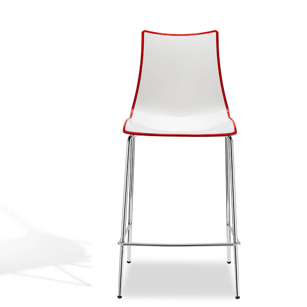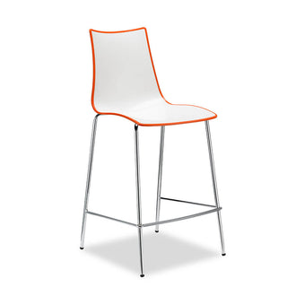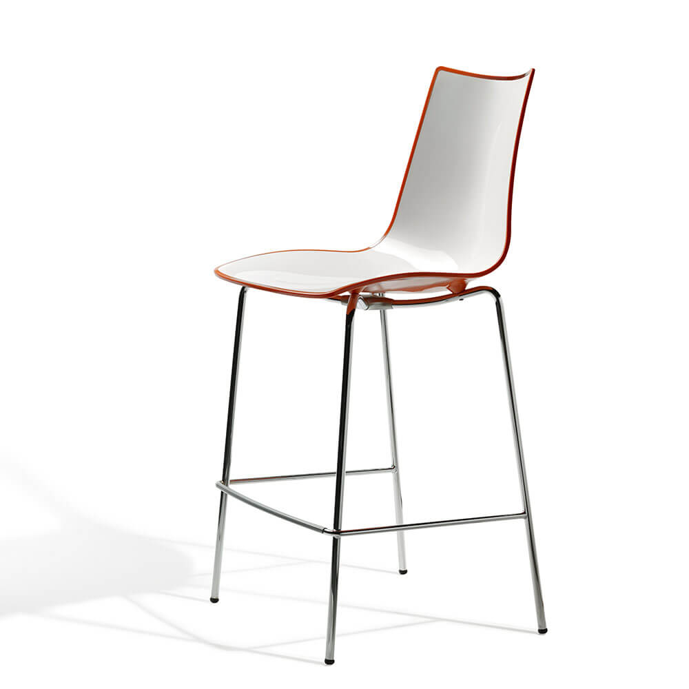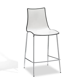 STOOL ZEBRA BICOLORE: three dimensions and colour. With its tridimensional shapes, this chair is the perfect balance between polished and opaque, colour and non-colour. Realized following the design of Luisa Battaglia, it has a polymeric body which creates an ergonomic, functional and resistant seat. The inside of the body is opaque refined, so it is anti-scratch, while outside it can be multifaceted in different colours. ZEBRA BICOLORE by Scab is here presented in its stool version with four legs h. 65 cm. made of chromed steel. In this version it confirms its essentiality, which makes it perfectly suitable to every space either private or public.