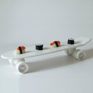 The Seletti Memorabilia My Skateboard elevates a familiar icon of street life into a luxury interior design statement. Its glossy porcelain surface and sleek, minimalist silhouette command attention, whether displayed horizontally on a console, vertically on a shelf, or incorporated into unconventional displays such as an avant-garde cake stand. As result of the Alessandro Zambelli & Seletti cooperation, the skateboard embodies the duality of Seletti’s philosophy: provocative yet refined, playful yet meticulously executed. It becomes a conversation piece that celebrates urban energy while fitting seamlessly into modern interiors, offering collectors a sculptural object that transforms the spirit of rebellion into elegance and imaginative storytelling.A timeless collectible of irony and craftsmanship