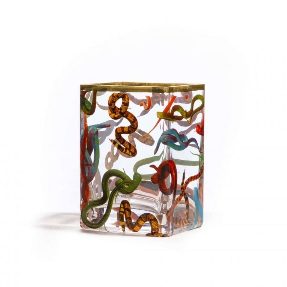 The Seletti Toiletpaper Rectangular Glass Vase blends irony, design, and craftsmanship into a single collectible piece. Conceived by Maurizio Cattelan & Pierpaolo Ferrari, it embodies the playful yet refined spirit of Toiletpaper Home. With its sleek shape and pop-inspired print, this glass vase turns everyday decor into an unexpected statement of wit and sophistication. It’s not just an accessory: it’s a small sculpture that reflects the duo’s surreal imagination and the power of Italian design to turn the ordinary into the extraordinary.