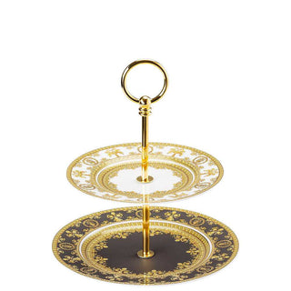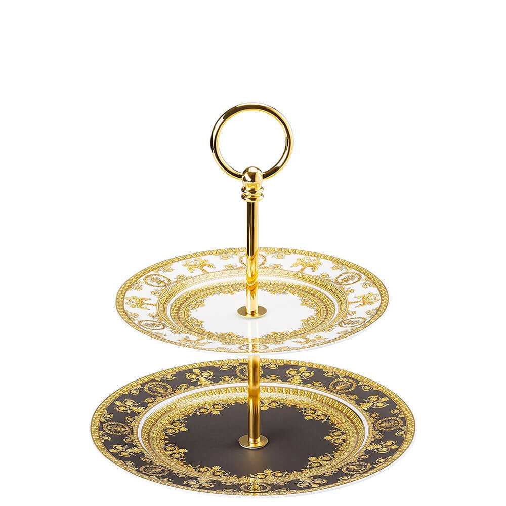 Shop Decor proposes the I Love Baroque small etagere 2 tiers. I Love Baroque is the elegant collection of plates, cups, vases and other table accessories designed by Versace Home. The I Love Baroque collection stands out for the unmistakable Baroque print, where classic golden decorations and details combine with modern colors, giving life to a unique tableware and home accessories with a refined and elegant taste. Make every occasion special with the unmistakable art of Versace Home.