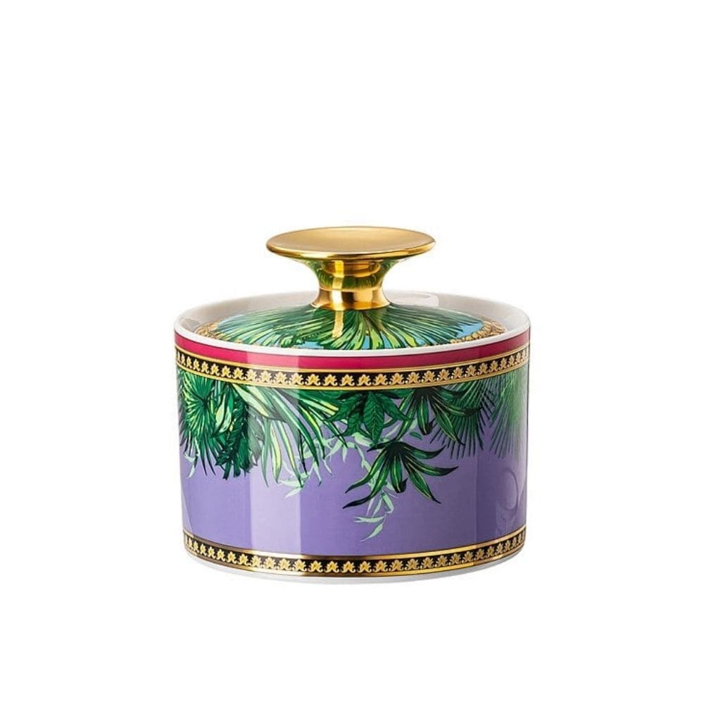 Shop Decor proposes the Jungle Animalier sugar bowl. Signed Versace Home, the new collection of plates and accessories Jungle Animalier combines Versace's famous Jungle print with the iconic figure of Medusa. Embellished with golden decorations, bright colors and floral motifs, Jungle Animalier is perfect for bringing luxury and cheerfulness to the table. Make every occasion special with the unmistakable art of Versace Home.