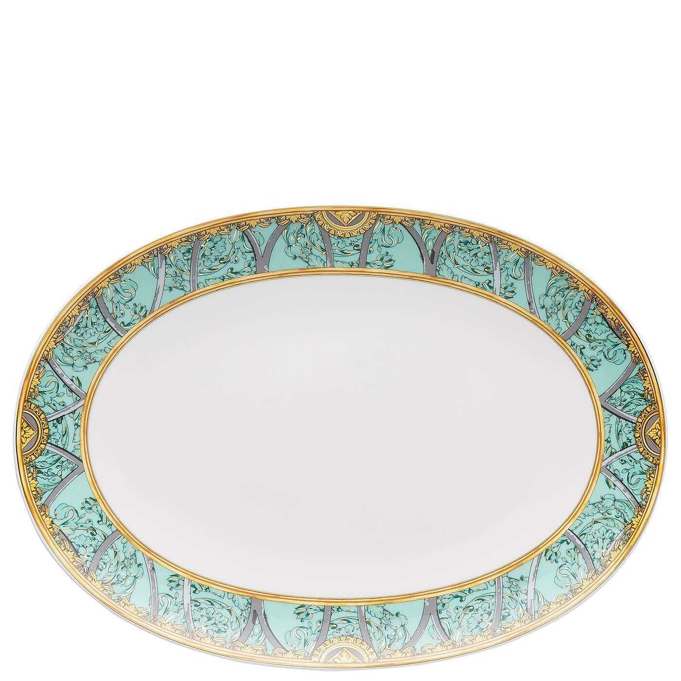 Shop Decor presents the La Scala del Palazzo green oval platter 33 cm. Inspired by Versace's Milanese palace and its particular staircase, La Scala del Palazzo is an elegant collection signed by Versace Home. The elegance of the new tableware is enhanced by the pastel tones that recall the fascinating world of the ancient Italian palaces. Make every occasion special with the unmistakable art of Versace Home.