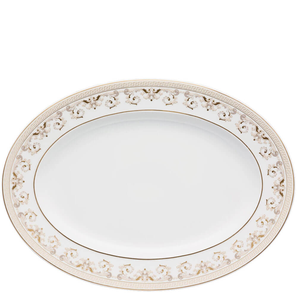 Shop Decor proposes the Medusa Gala oval platter 34x24.5 cm. Medusa Gala is the precious collection of plates, cups, vases and other table accessories designed by Versace Home. Decorated with the iconic representation of the head of Medusa, the Medusa Gala collection combines golden details in a classic style with the gold color, creating a unique tableware with a refined and elegant taste. Make every occasion special with the unmistakable art of Versace Home.