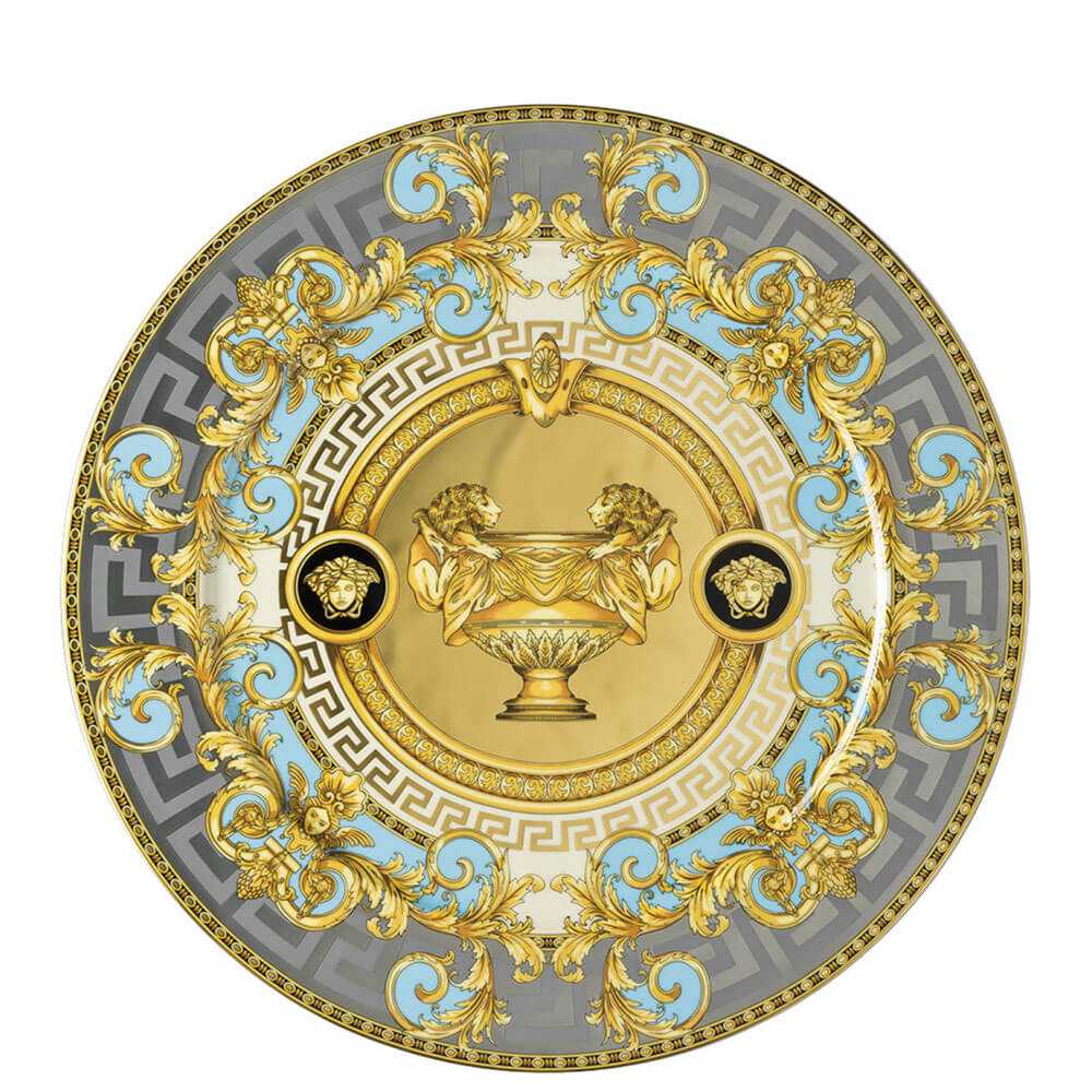 Shop Decor presents the Prestige Gala Le Bleu service plate diam. 30 cm. Inspired by the prints of Versace's "Le Vase Baroque" fabrics, the Prestige Gala Le Bleu collection is a triumph of gold and platinum decorations signed by Versace Home. Decorated with a large golden vase finished with precious leaves, the Prestige Gala Le Bleu collection combines the classic style with decorative motifs in shades of turquoise and lilac, creating a tableware with a refined and elegant taste. Make every occasion special with the unmistakable art of Versace Home.
