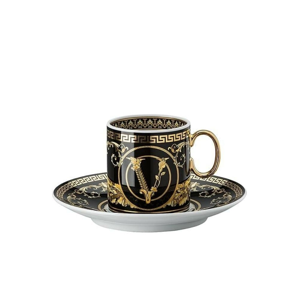 Shop Decor proposes the Virtus Gala Black espresso cup and saucer. The iconic V of Versace in baroque style distinguishes the Virtus Gala collection by Versace Home. Embellished with golden decorations on a black background, the Virtus Gala Black tableware brings to the table the luxury and opulence of a unique dining experience. Make every occasion special with the unmistakable art of Versace Home.