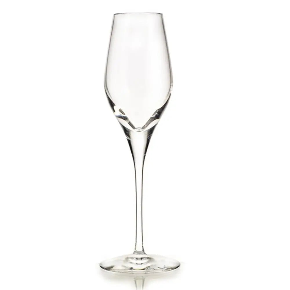 Within the ecosystem of Vista Alegre Tumblers & Wine Glasses, the Lybra flute stands out for its carefully balanced proportions. The elongated bowl supports the development of carbonation while maintaining the freshness of sparkling wines. Its vertical structure allows the effervescence to unfold gradually, reinforcing both aroma and visual elegance during service. Among contemporary designer stem glasses, the piece demonstrates how geometry and material clarity can influence the tasting experience while contributing to the overall harmony of a refined table setting.Crystal craftsmanship and luminous clarity