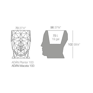 ADAN is the wonderful collection of design complements created exclusively for Vondom by the designer Teresa Sapey. The ADAN' s range is made up of 3 elements: MACETEROS ADAN vase, TABURETE ADAN stool and MESA ADAN table. The entire collection is the result of a perfect balance between past and future: rather than complements, they are multifunctional pieces of architecture. Shop Decor proposes MACETEROS ADAN, a wonderful vase, which is faceted like a diamond. Moreover it is made of opaque polypropylene and it is perfect for both indoor and outdoor use. Its size is: 70 x 96 cm and 100 cm tall.