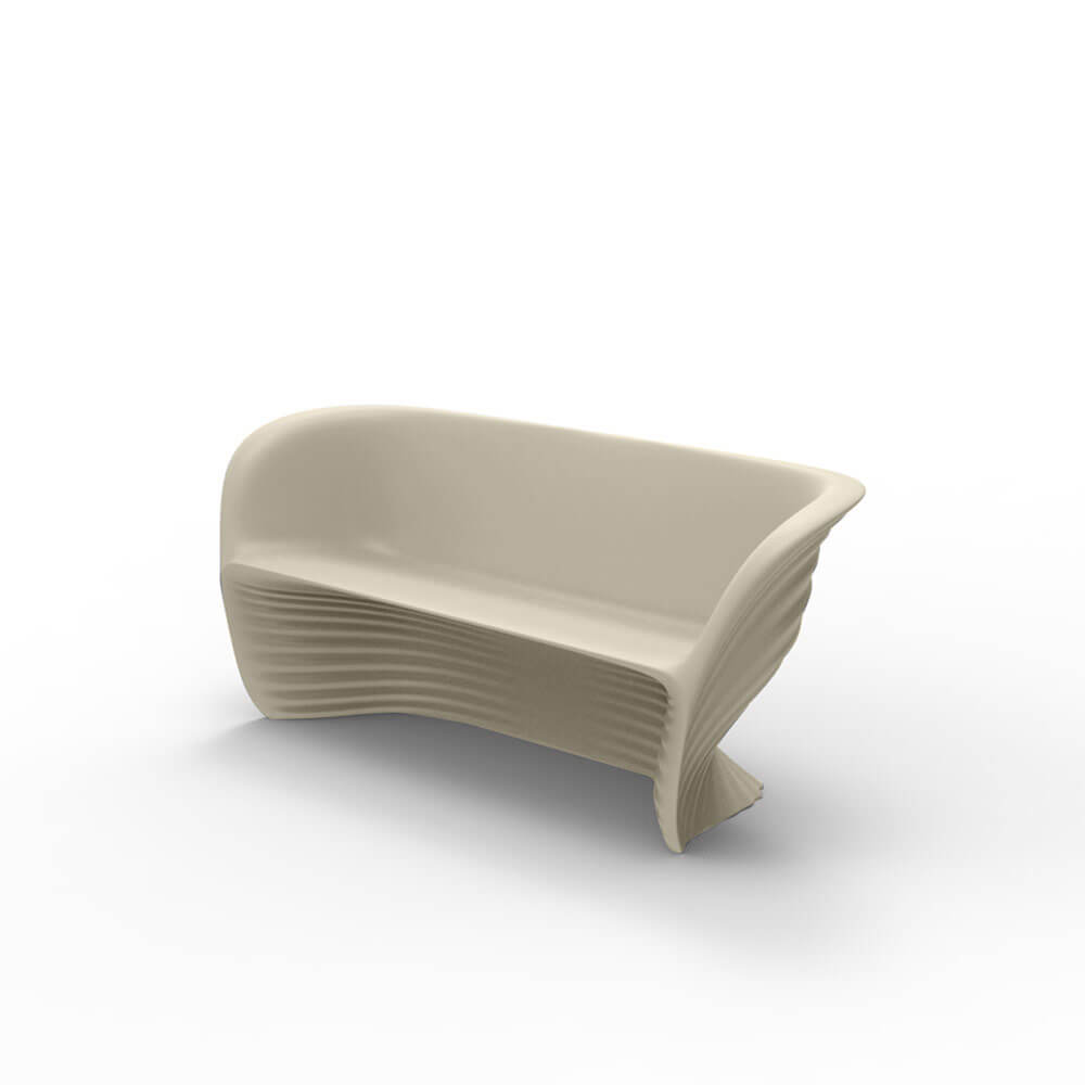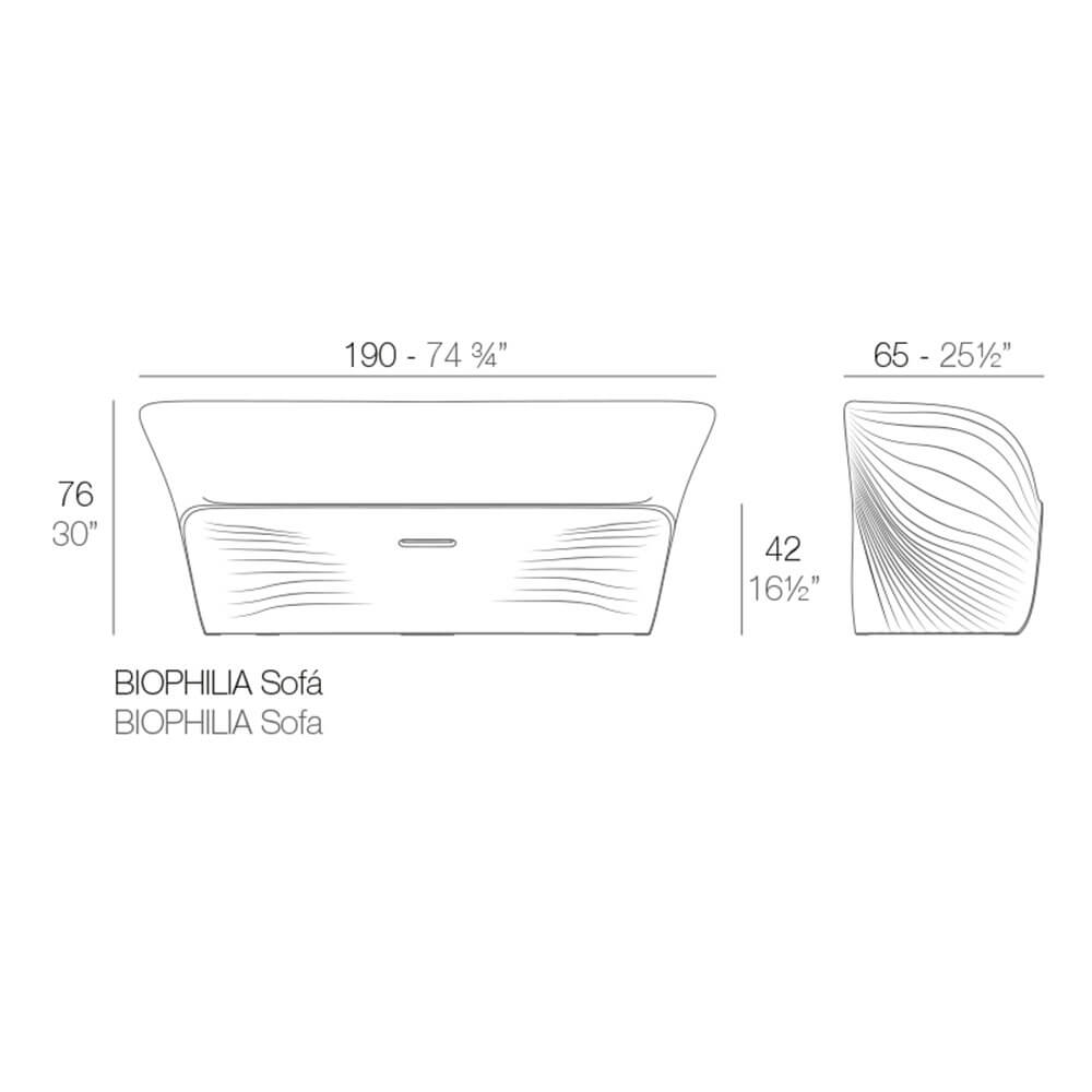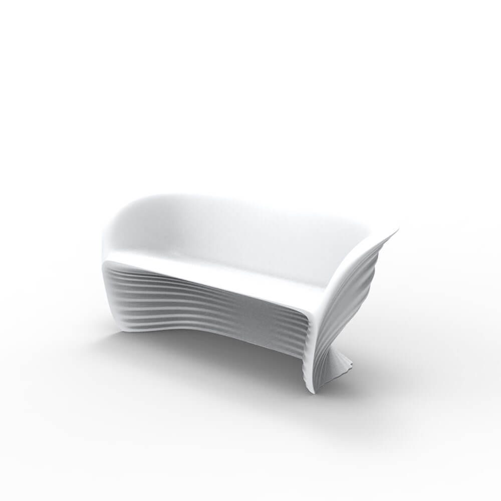 Vondom’s BIOPHILIA’s collection is the highest expression of advanced design and technology, Ross Lovegrove’s work joining the dreamlike and timeless shapes of Antoni Gaudì’s Sagrada Familia. Through the technique of rotational moulding, Ross Lovegrove proposes an original and innovative collection on which he experiments the processes of digital transfer of contemporary design. BIOPHILIA’s soft shapes and the perfect undulations on its surface recall the sea waves and make them give a dynamic and lively effect to all kind of ambiences, indoor or outdoor. BIOPHILIA’s collection is made up of a series of unique and original pieces of furniture: the Butaca armchair, the Sofa, the Silla, the original tapered chair; Mesa Sofa and Mesa outdoor tables are also available. All BIOPHILIA’s pieces are available in the original colours white, black, ecru, red and bronze: combine all of them, with their different shapes and colours, to obtain lively and original results. BIOPHILIA SOFA is the original outdoor sofa, made of matte embossed polypropylene. Let yourself surrender by BIOPHILIA’s waves.