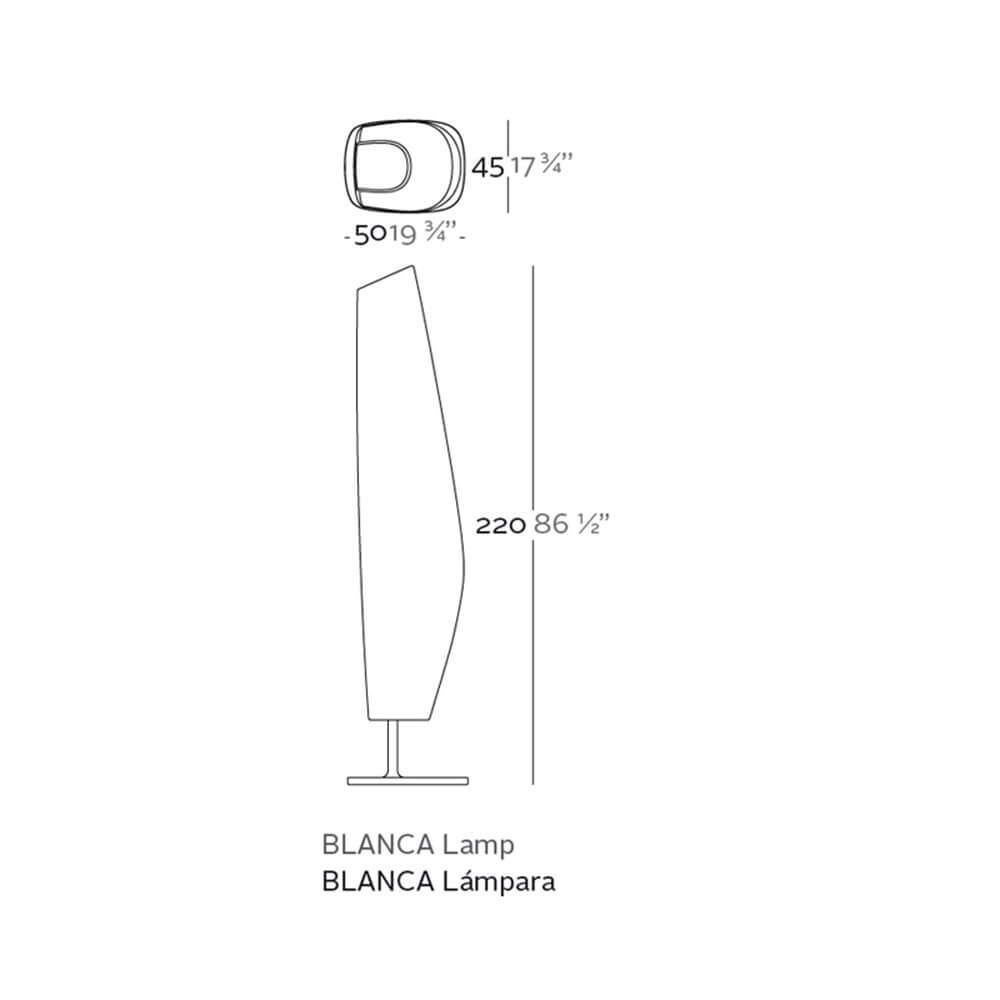 BLANCA - LAMPARA is the design lamp created by the Spanish designer Javier Mariscal exclusively for Vondom. BLANCA - LAMPARA is made of polypropylene through the method of rotational moulding. The lamp is perfect for outdoor and indoor use; it can also be easily used for residential settings or for contract. The very demanding tests, to which it has been subjected, are a guarantee for prolonged outdoor use, even in the most extreme weather conditions. BLANCA - LAMPARA is a bright floor lamp characterized with beautiful aesthetic features, ideal for creating suggestive atmospheres. Its dimensions are 45 x 50 cm, with a height of 220 cm. Shop Decor proposes the lamp with two different light sources. This lamp is the bright white version with LED bulb included.