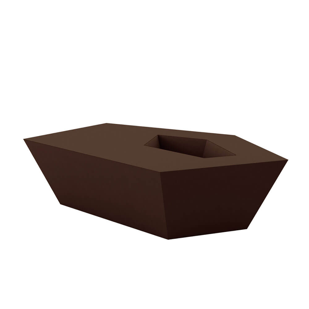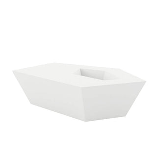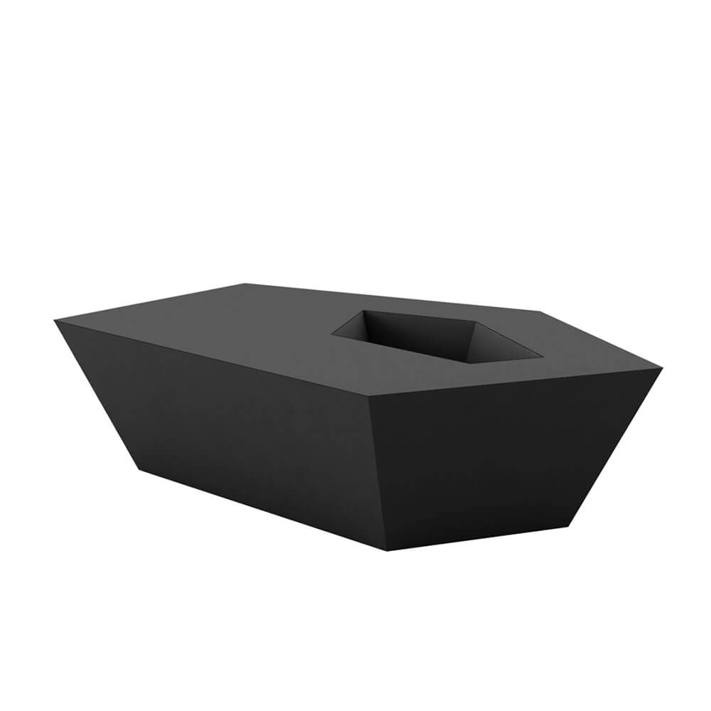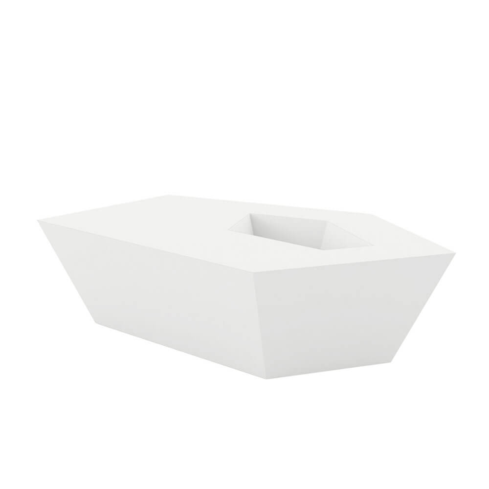 Ramon Esteve takes Vondom’s invitation up in order to create one of the most important collection of the brand, FAZ, a tribute to pure design and to a minimal style that can furnish with sophistication. FAZ collection is made up of several decorative elements such as sofa, chairs, garden daybeds and vases, all sharing the same style characterized by geometrical, square, sharp shapes. Vondom works with matte embossed polypropylene and obtains furnishing elements that are proper work of arts, elements that can transform your living spaces and outdoors in an independent reign: FAZ’s world, where shapes and colours give life to games of lights and shades and transforms them into the real protagonists. Shop Decor proposes the original FAZ MESA TUMBONA, the outdoor coffee table matching the outdoor garden daybed. The garden daybed and the table FAZ seem to be carved directly out of a mineral, transforming it into a real throne with original faceting, available in white, black, red, bronze and ecru. Combine several FAZ furnishing elements to transform your ambiences in an alternative and dreamlike world from another planet.