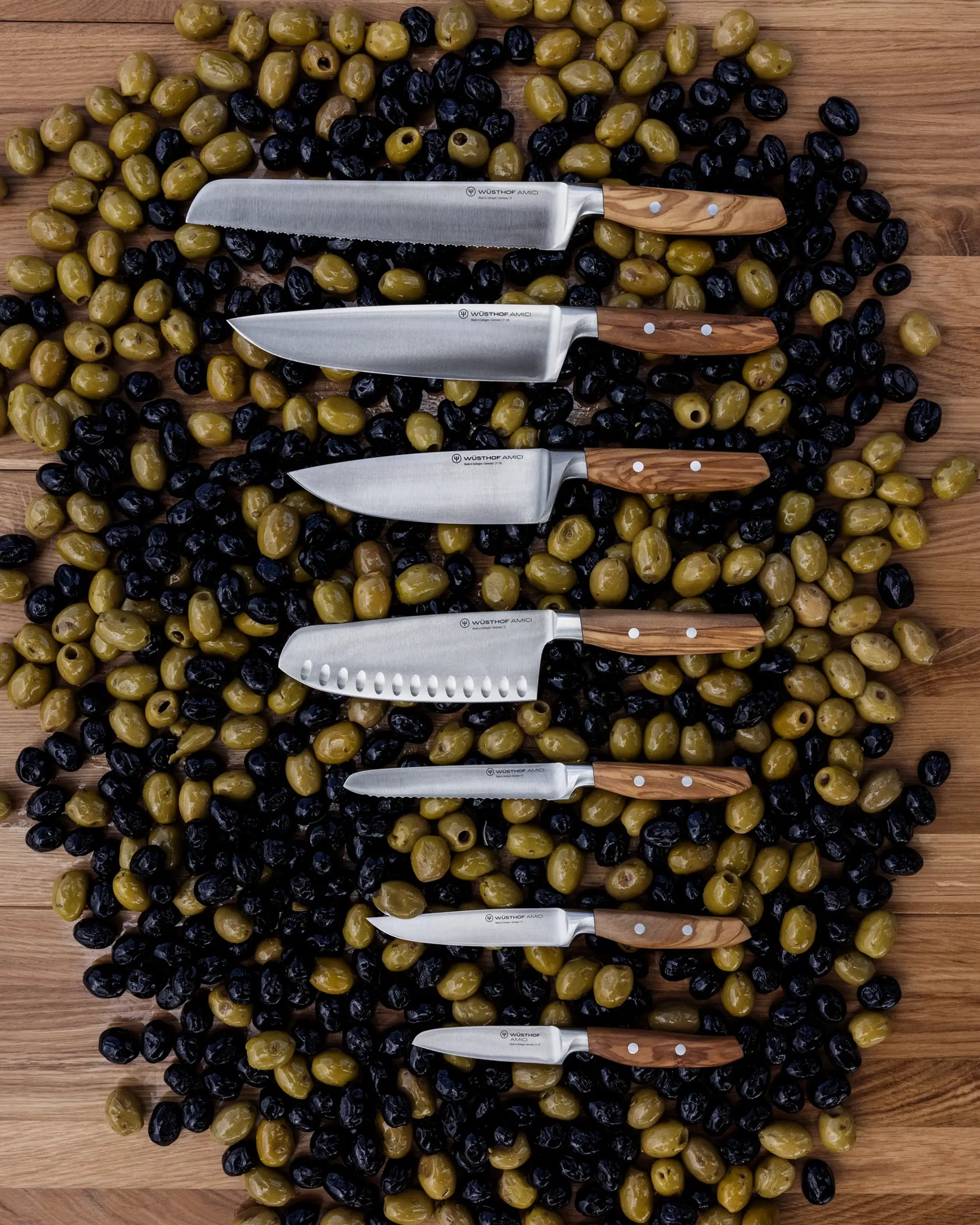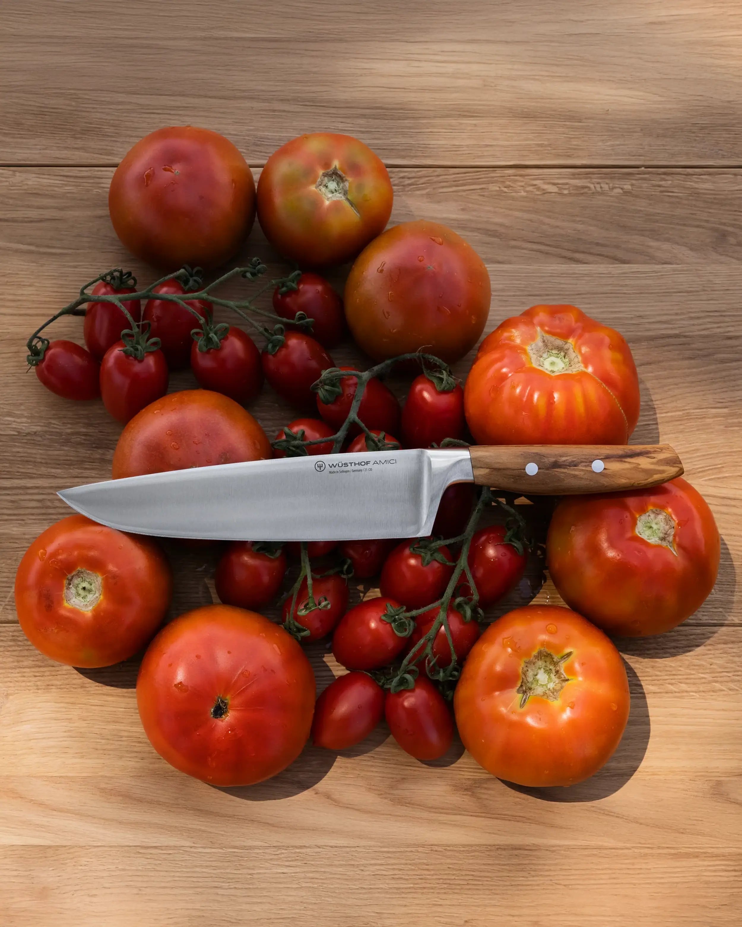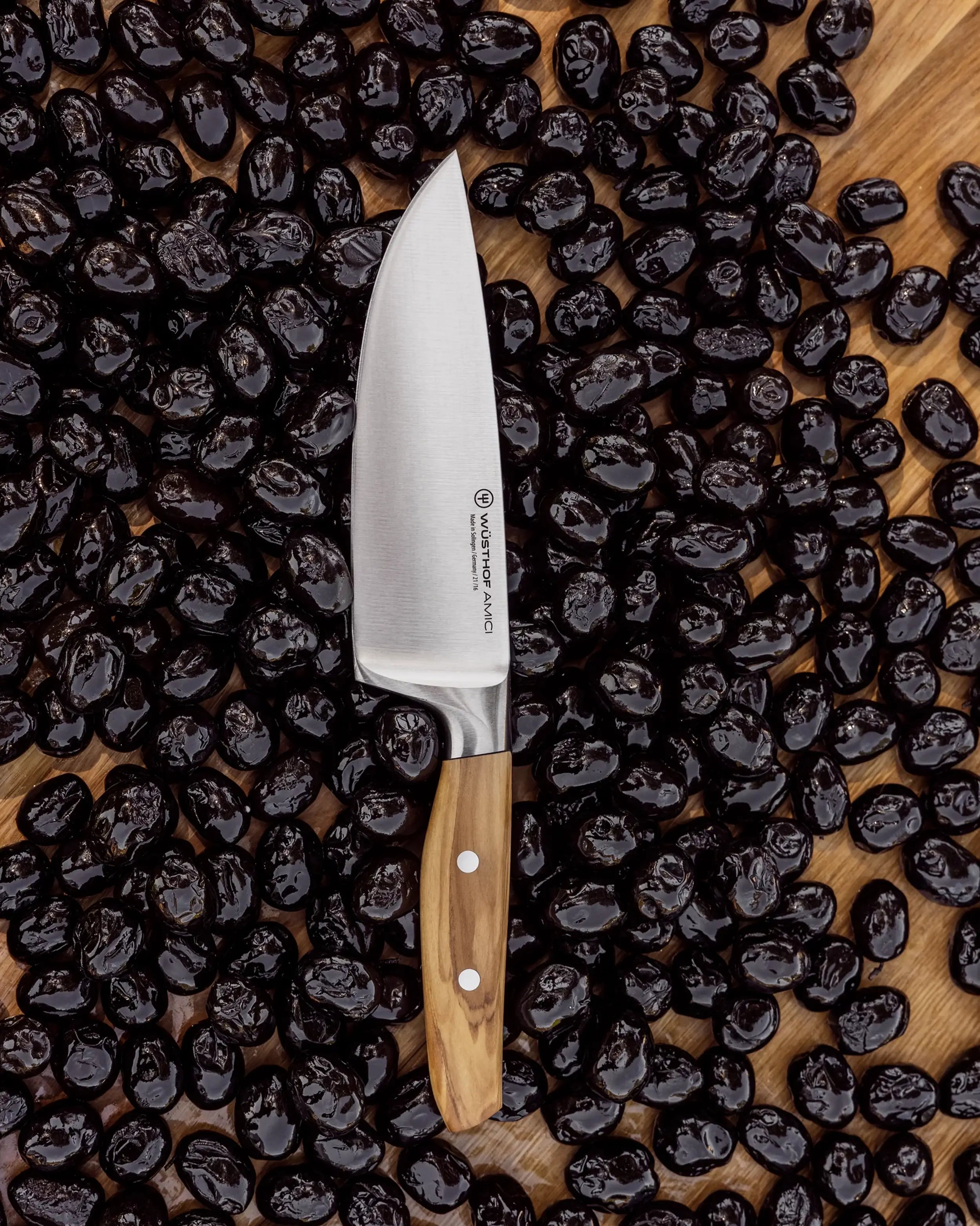 What truly distinguishes the wusthof amici chef knife is its olive wood handle—organic, warm, and comfortable to hold. No two handles are alike, making each knife a personal expression of character. It’s a blend of Wüsthof German Knives tradition with Mediterranean charm, ideal for cooks who value both performance and artistry.