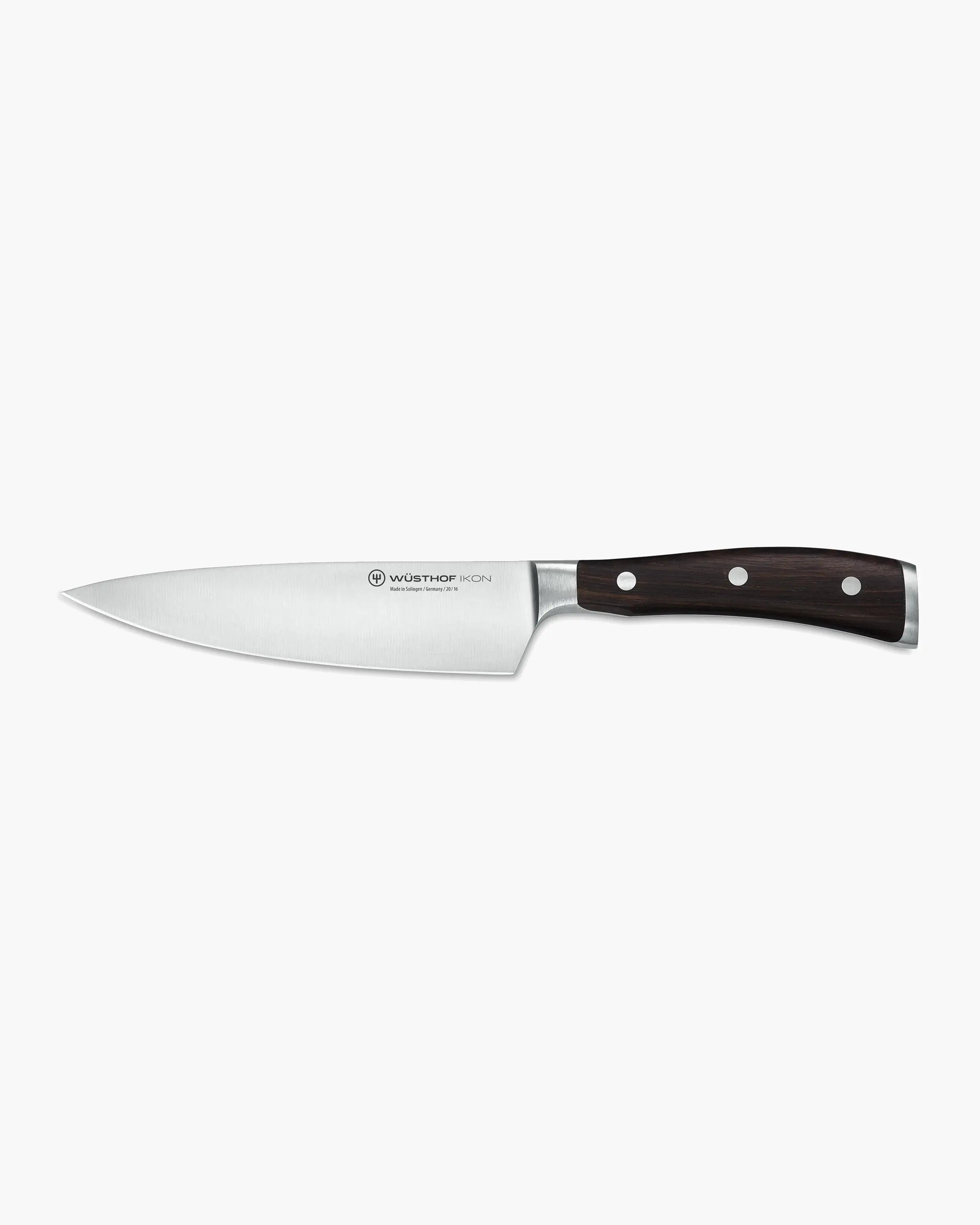 The Wüsthof Ikon chef's knife in African Black Wood is more than a kitchen essential—it’s an extension of your hand, designed for those who seek perfection in every slice. Made in Solingen, Germany—world-renowned for fine blade manufacturing—this 16 cm masterpiece seamlessly fuses performance with prestige, putting you in command of every culinary task.
