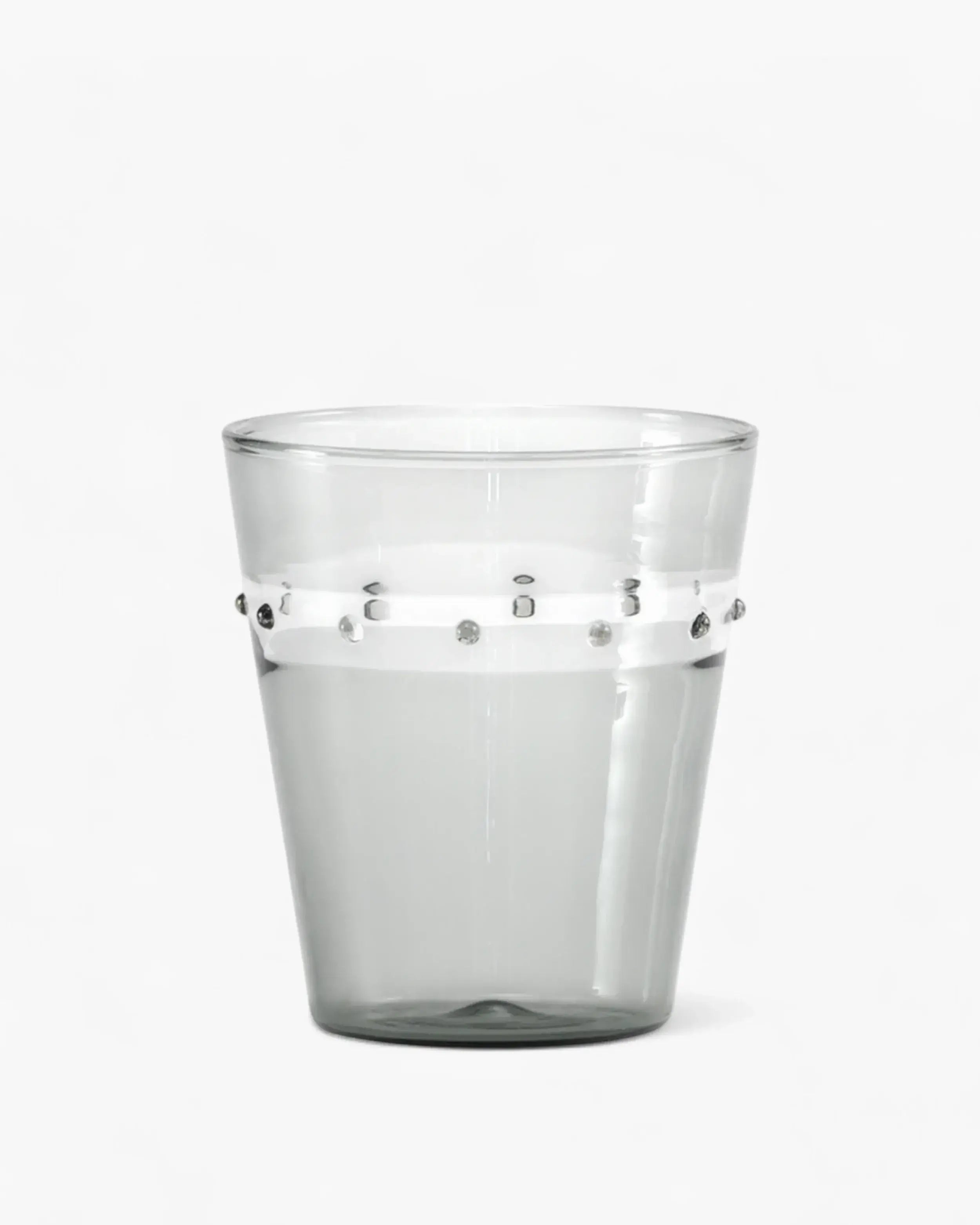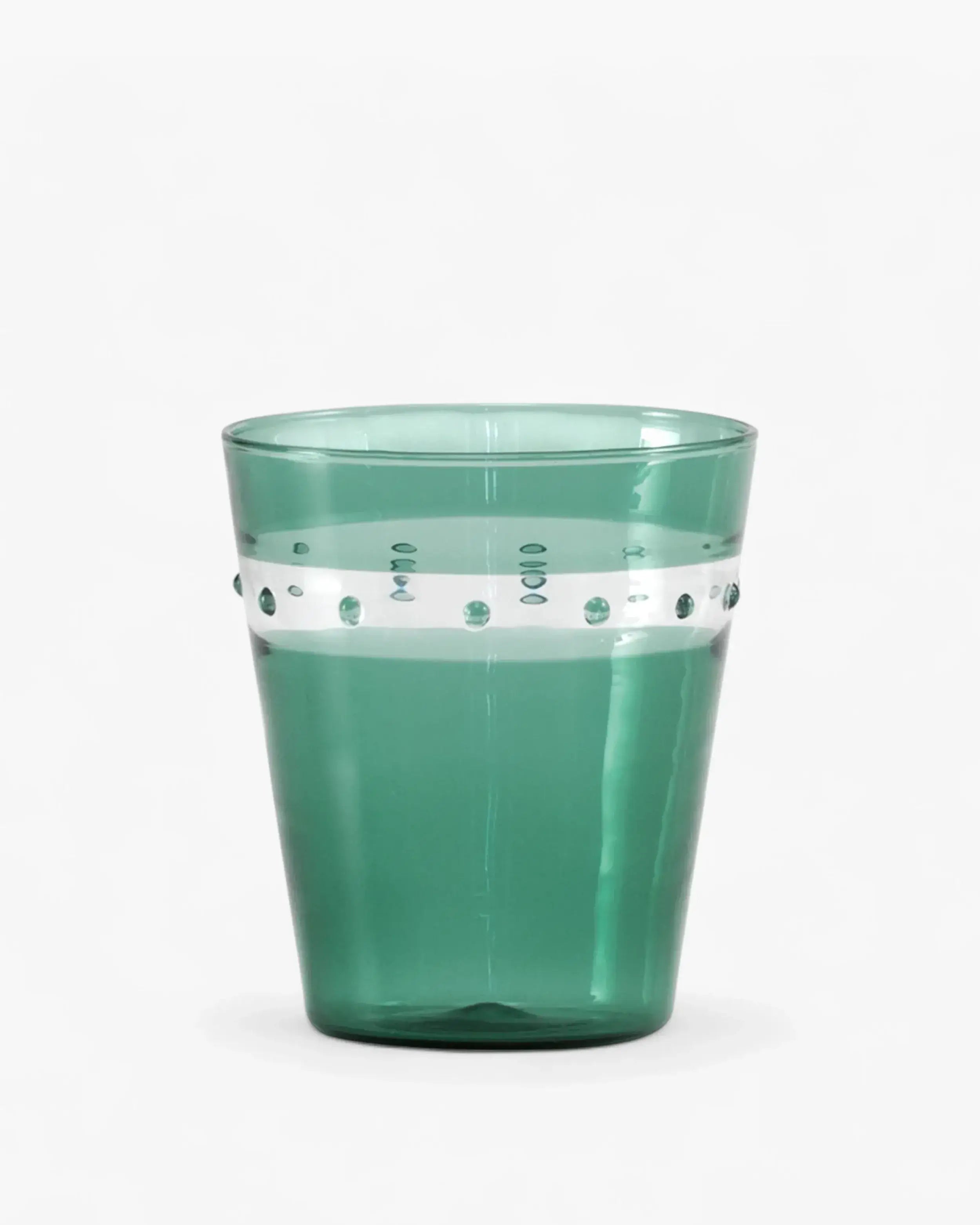 Each tumbler in the set is crafted from high-quality blown borosilicate glass, offering a lightweight yet durable construction. The A Pallini design, featuring distinctive polka-dot patterns, adds a touch of whimsical charm to your drinkware. The set comes in four stunning colors: gray, lake green, golden yellow, and light blue, bringing vibrancy to your dining experience.