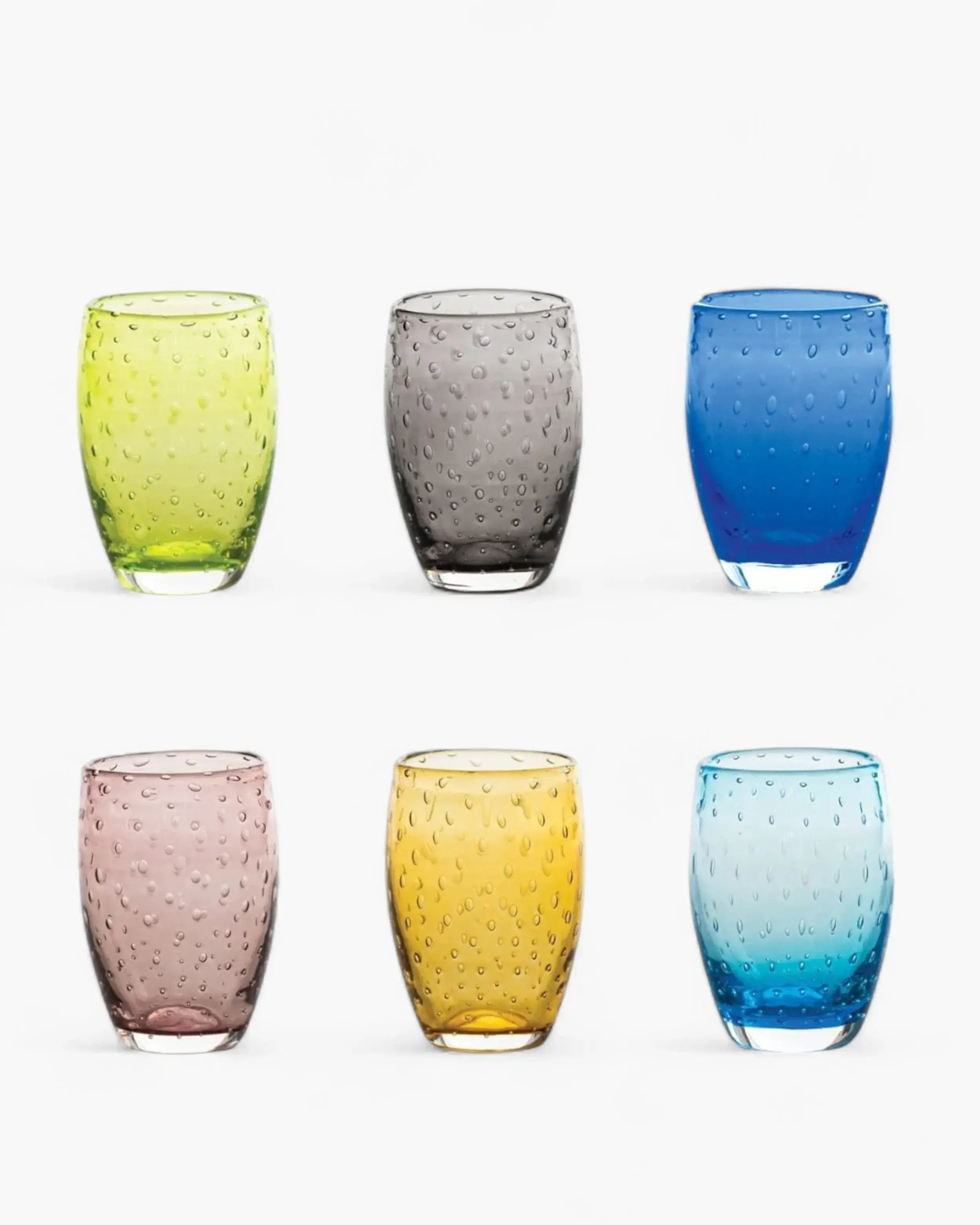Infuse your dining experience with vibrant hues and timeless charm with the Zafferano Bolicante set of 6 tumblers. Each glass in this stunning collection features a unique color—aquamarine, amber, amethyst, blue, gray, and apple green—making it the perfect addition to any table setting. Whether for casual family meals or elegant dinner parties, these tumblers bring a splash of personality to your glassware.