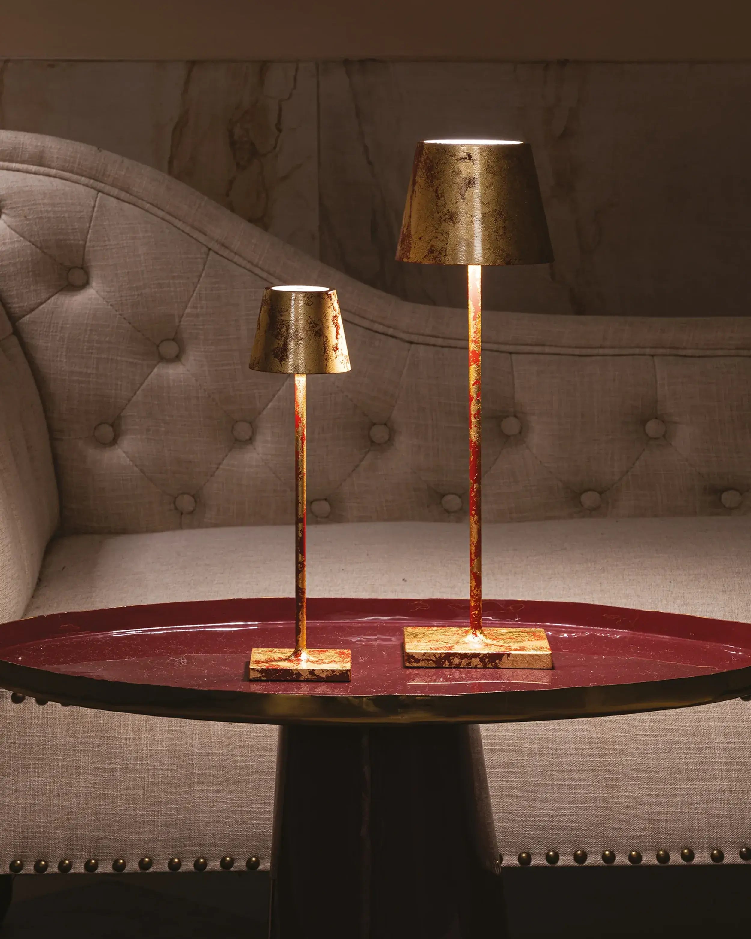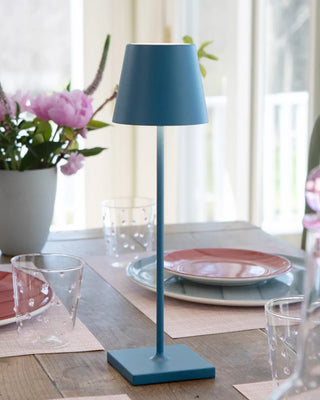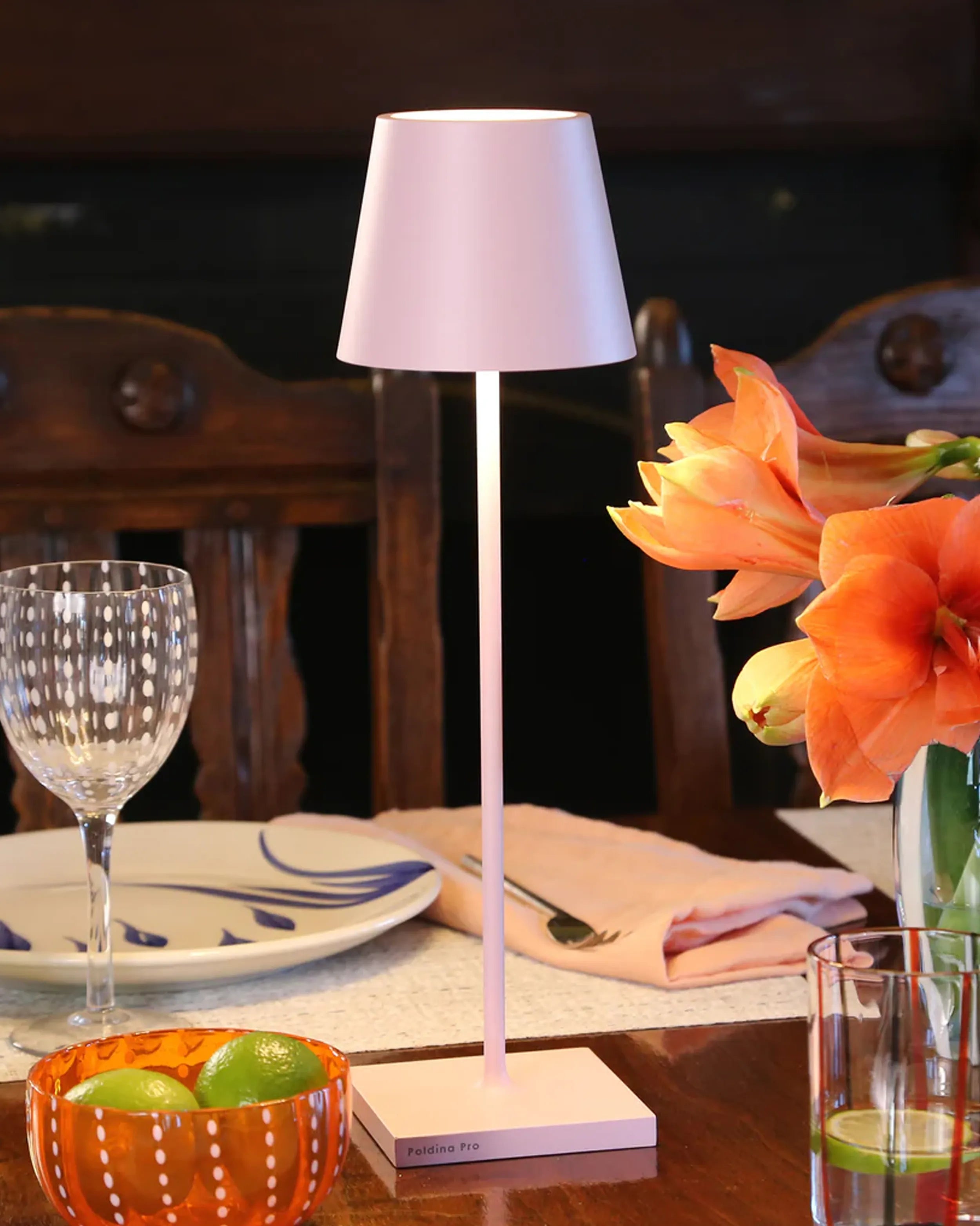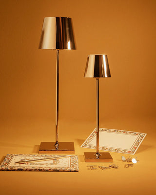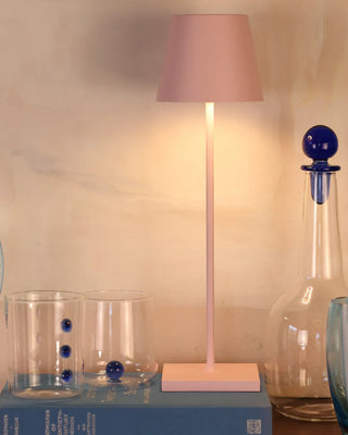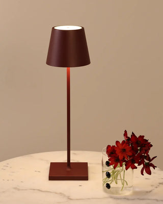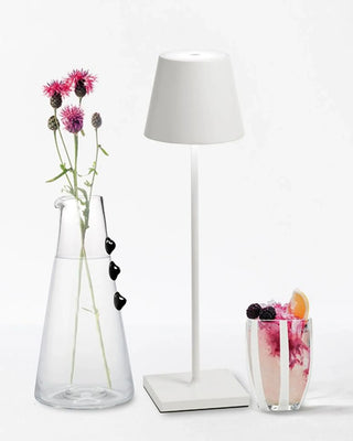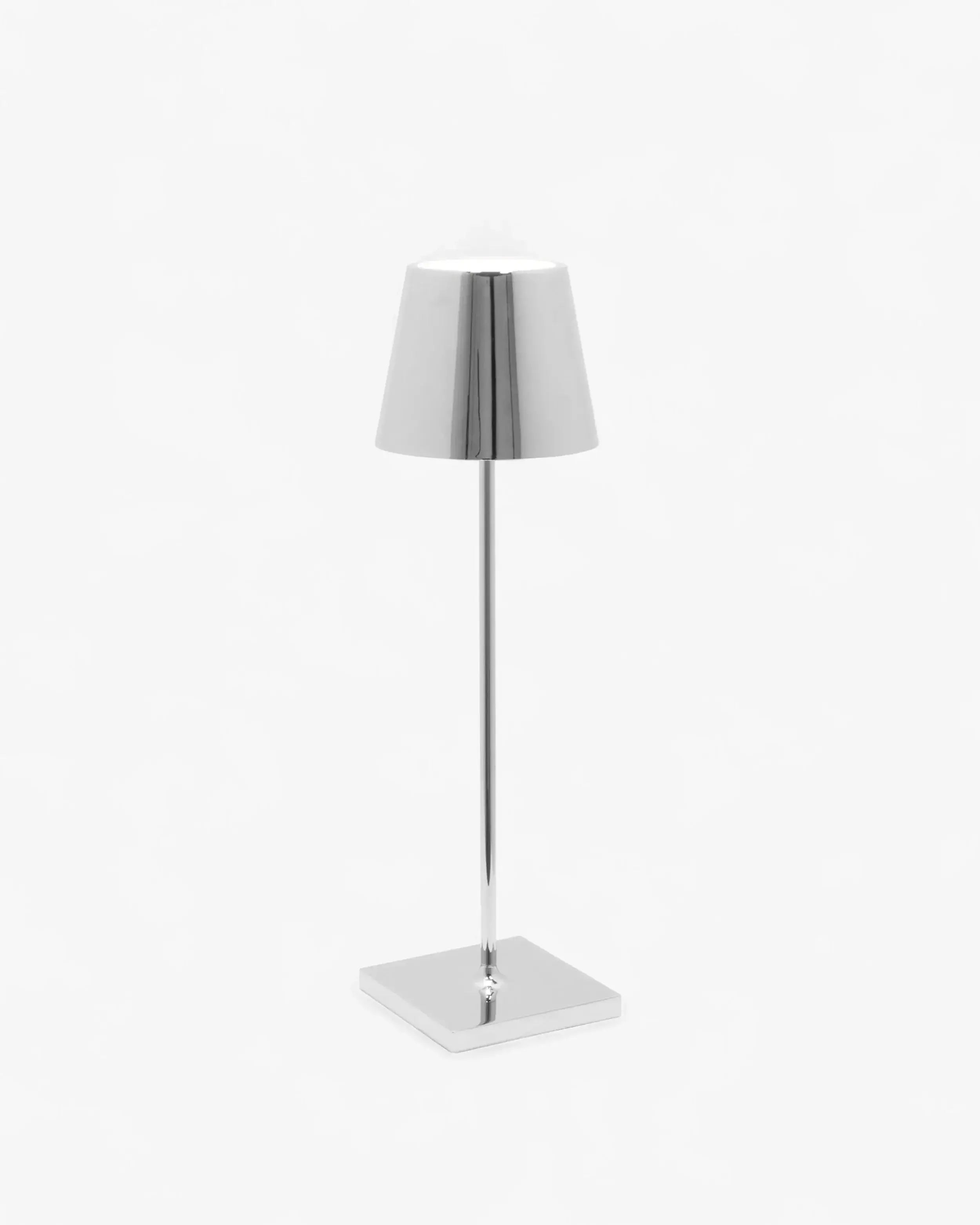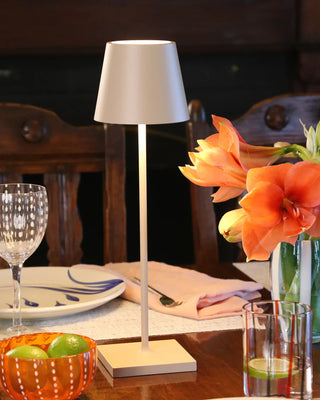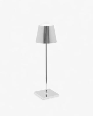 The Zafferano Poldina Pro table lamp brings portability and convenience to your lighting needs. Its rechargeable lamp design allows up to 9 hours of use, making it ideal for extended events or daily use. With a contact charging base included, recharging the lamp is simple and efficient, taking about 6 hours to fully charge. Whether you need a bright space for focus or a soft glow for a relaxed atmosphere, this portable lamp is the perfect lighting solution for any occasion.