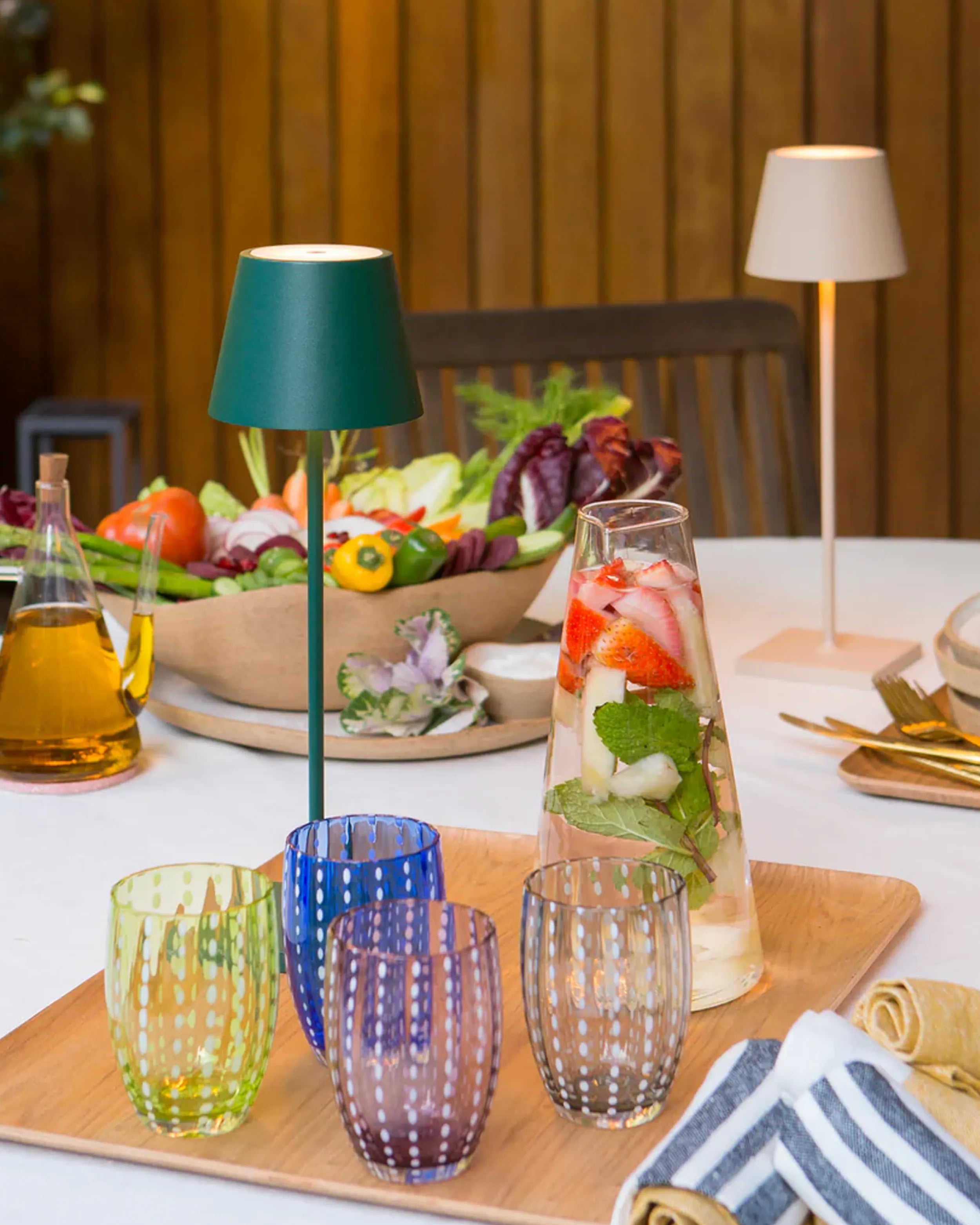 Designed for versatility, the Zafferano Poldina lamp transitions easily between indoor and outdoor settings. Its lightweight aluminum body makes it easy to carry and place wherever needed, while the polycarbonate diffuser ensures the light remains soft and inviting. Whether you're hosting an intimate outdoor gathering or lighting up your living room, the Zafferano Portable lamps collection offers the flexibility you need to create the perfect ambiance.