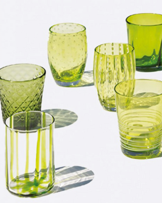 The renowned designer Federico De Majo has masterfully created this playful yet sophisticated collection. Made from high-quality glass, the Federico De Majo Glass Zafferano combines durability with artistry. Due to the assorted nature of the set, no two combinations are alike, making your collection truly one-of-a-kind.