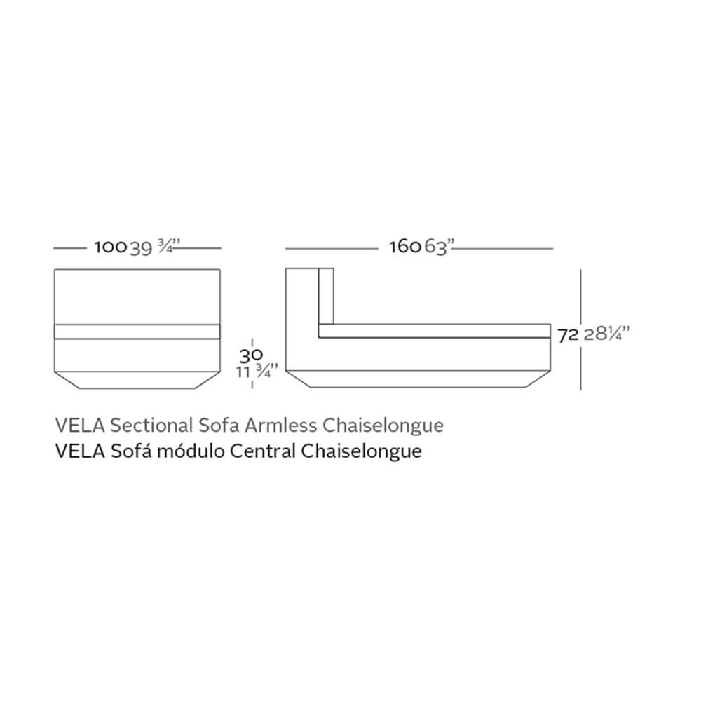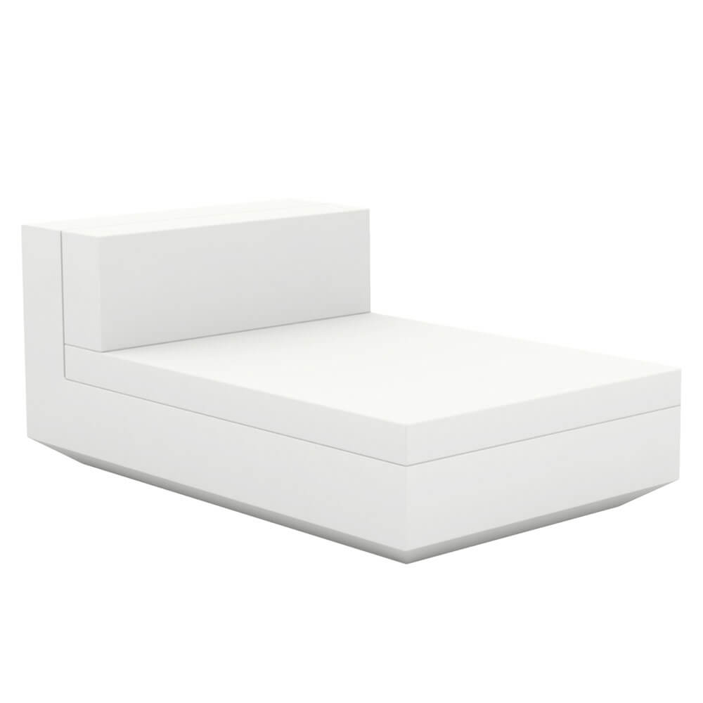 Vondom colabora mais uma vez com Ramon Esteve para propor uma das coleções mais elegantes e refinadas da marca espanhola: VELA, uma coleção rica e variada de elementos de mobiliário, um design limpo e essencial para mobiliar com estilo e requinte. Todos os componentes VELA são caracterizados por um estilo geométrico e limpo, que recorta formas em um espaço bem definido e limpo, dando um efeito equilibrado e leve ao ambiente. Combine todos os componentes VELA para criar espaços e ambientes de última geração para ambientes internos e externos: disponíveis nas cores branco, cru e bronze, esses tons suaves fazem seus espaços parecerem chiques e refinados, adaptando-se a todos os tipos de contextos. O módulo VELA SOFA CENTRAL CHAISELONGUE é o elemento que pode ser combinado com os outros módulos VELA SOFA, que podem ser unidos para criar um único sofá grande com as formas e comprimento desejados. A almofada é fácil de lavar e é revestida em couro náutico removível, um material que garante o mais alto conforto e a máxima resistência às intempéries. Deixe-se levar ao mundo etéreo de VELA.