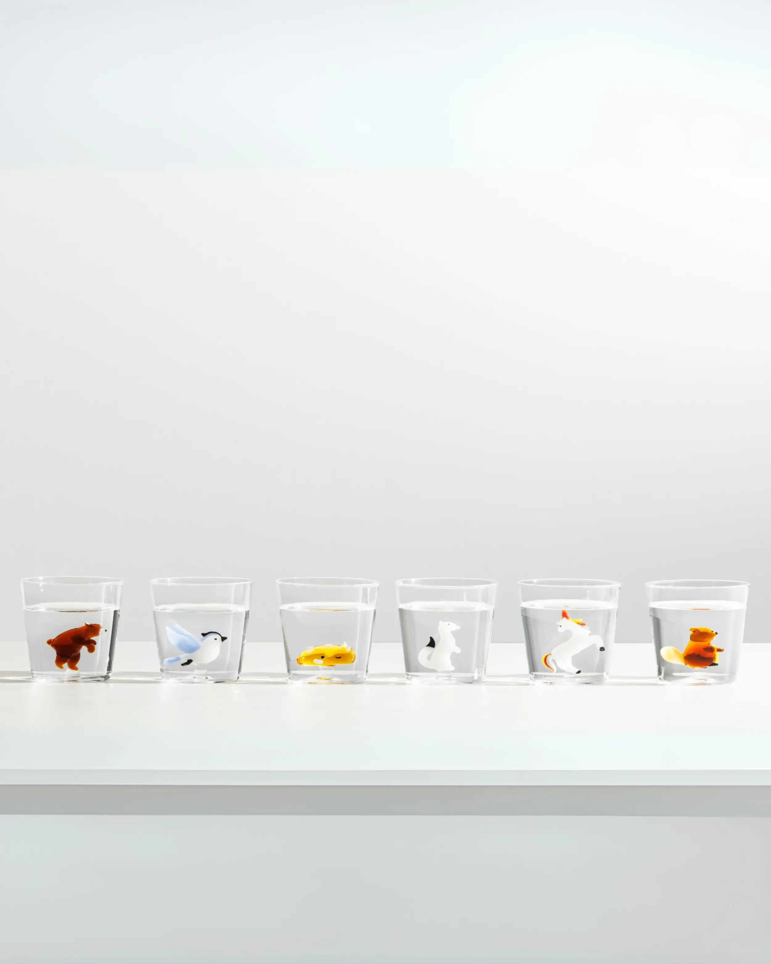 Nem todos os copos são apenas um recipiente, e o Ichendorf Woodland Set of 6 Tumblers prova isso com elegância. Em vez de oferecer seis peças idênticas, esta coleção traz para a mesa uma floresta em miniatura, cada copo escondendo dentro de si uma história diferente. Fabricados em borosilicate glass, são tão leves como o ar, mas suficientemente resistentes para o uso diário. A sua transparência revela o encanto interior: pequenos animais trabalhados a lume: cervos, esquilos, ouriços, pássaros; cada um cuidadosamente moldado, cada um carregando um pedaço da magia da floresta. O resultado é um conjunto que transforma um jantar comum numa cena da natureza, onde cada convidado recebe não apenas um copo, mas uma personagem para acompanhar a sua bebida.