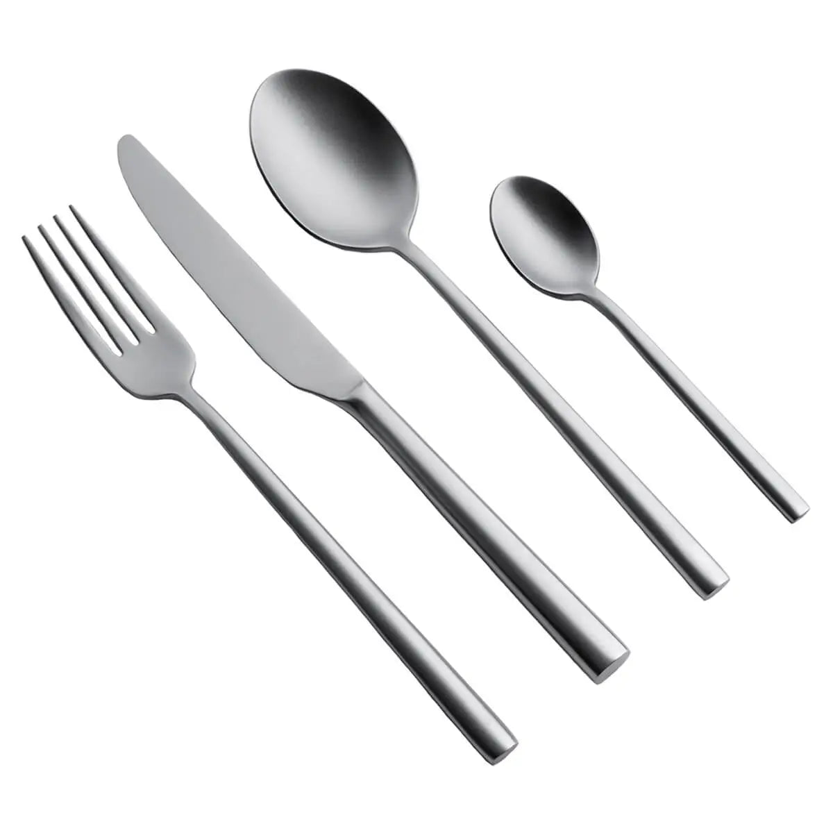 Fabricado em aço para durabilidade e facilidade, o conjunto da KnIndustrie inclui 6 colheres de mesa, 6 garfos de mesa, 6 facas de mesa e 6 colheres de chá. Projetado para uso alimentar e totalmente seguro para máquina de lavar louça, incorpora a combinação ideal de forma e função. Uma expressão perfeita de artisan cutlery knindustrie, este é um talher para quem acredita que cada detalhe na mesa conta uma história.