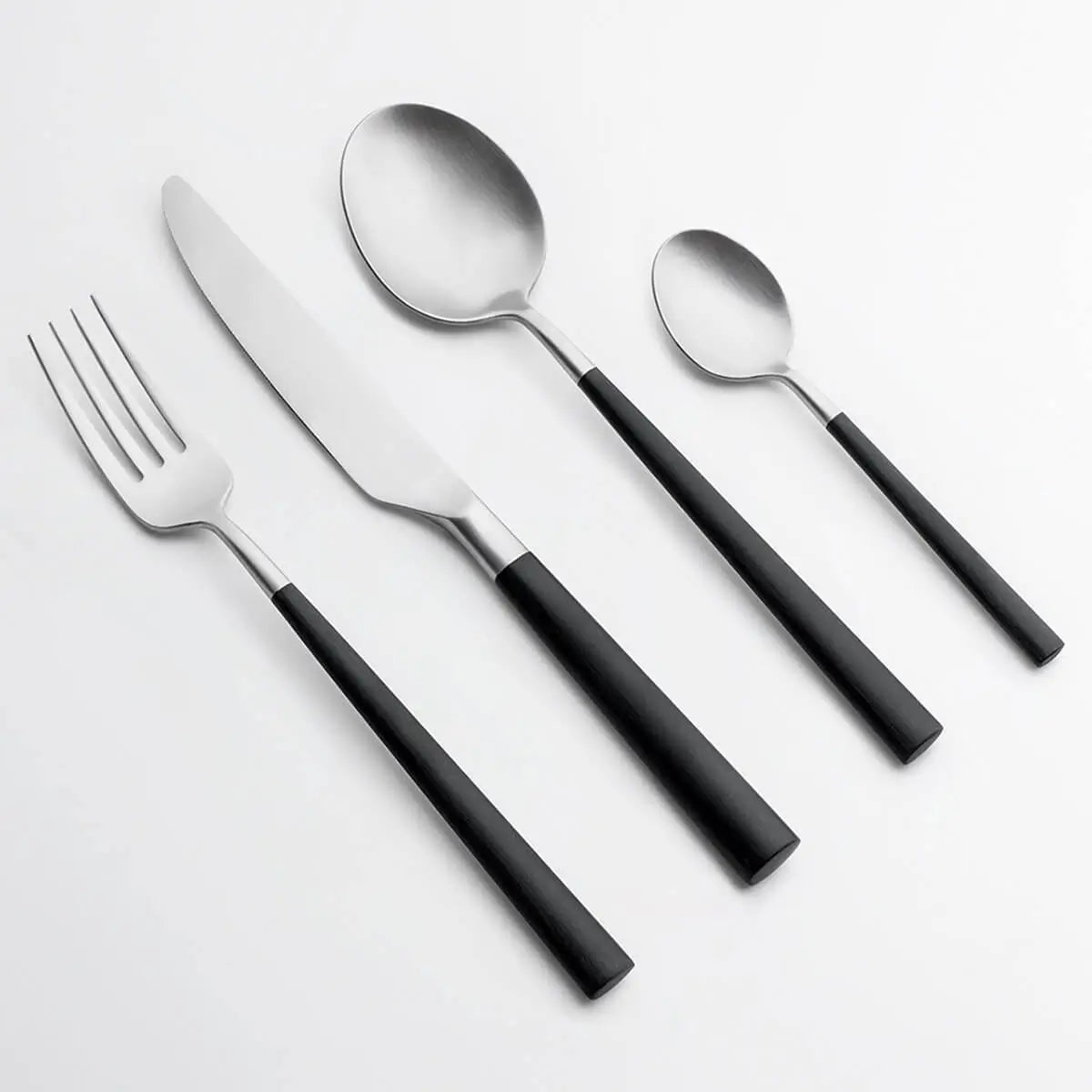 A combinação única de aço e polímero preto adiciona um toque arquitetónico a este conjunto, permitindo que se destaque em qualquer decoração de mesa. Quer esteja a melhorar a sua decoração de mesa ou a adicionar a uma coleção selecionada de Knindustrie cutlery ou Knindustrie forks and spoons, o conjunto 801 traz tanto unidade como contraste a cada refeição.