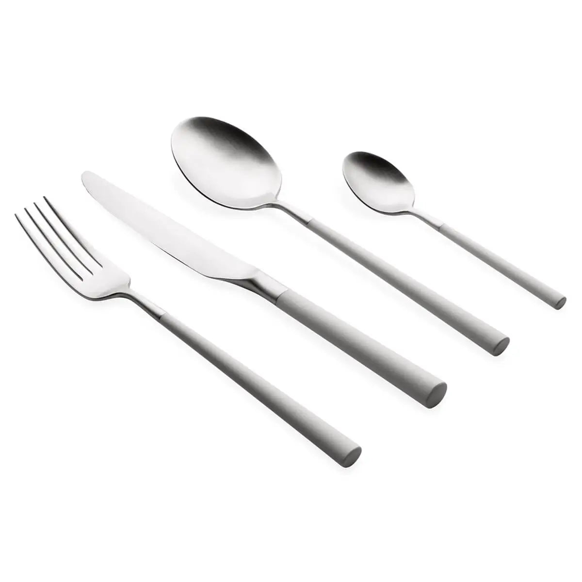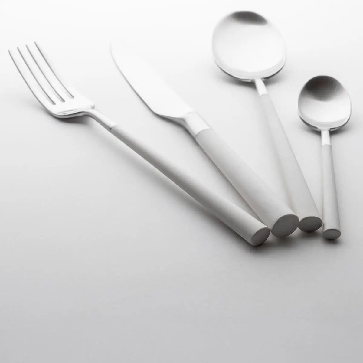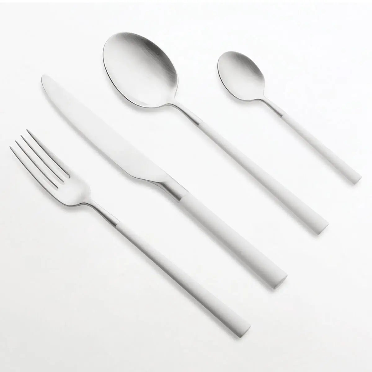 Minimalista na alma, ousado no estilo—o KnIndustrie 801 Cutlery set 24 pieces foi concebido para redefinir o aspeto e a sensação da sua mesa de jantar contemporânea. Com o seu acabamento distinto em gelo e cabos termoplásticos pretos mate, este conjunto da KnIndustrie oferece um contraste tátil e visual que eleva qualquer experiência de jantar com um carácter inconfundível.