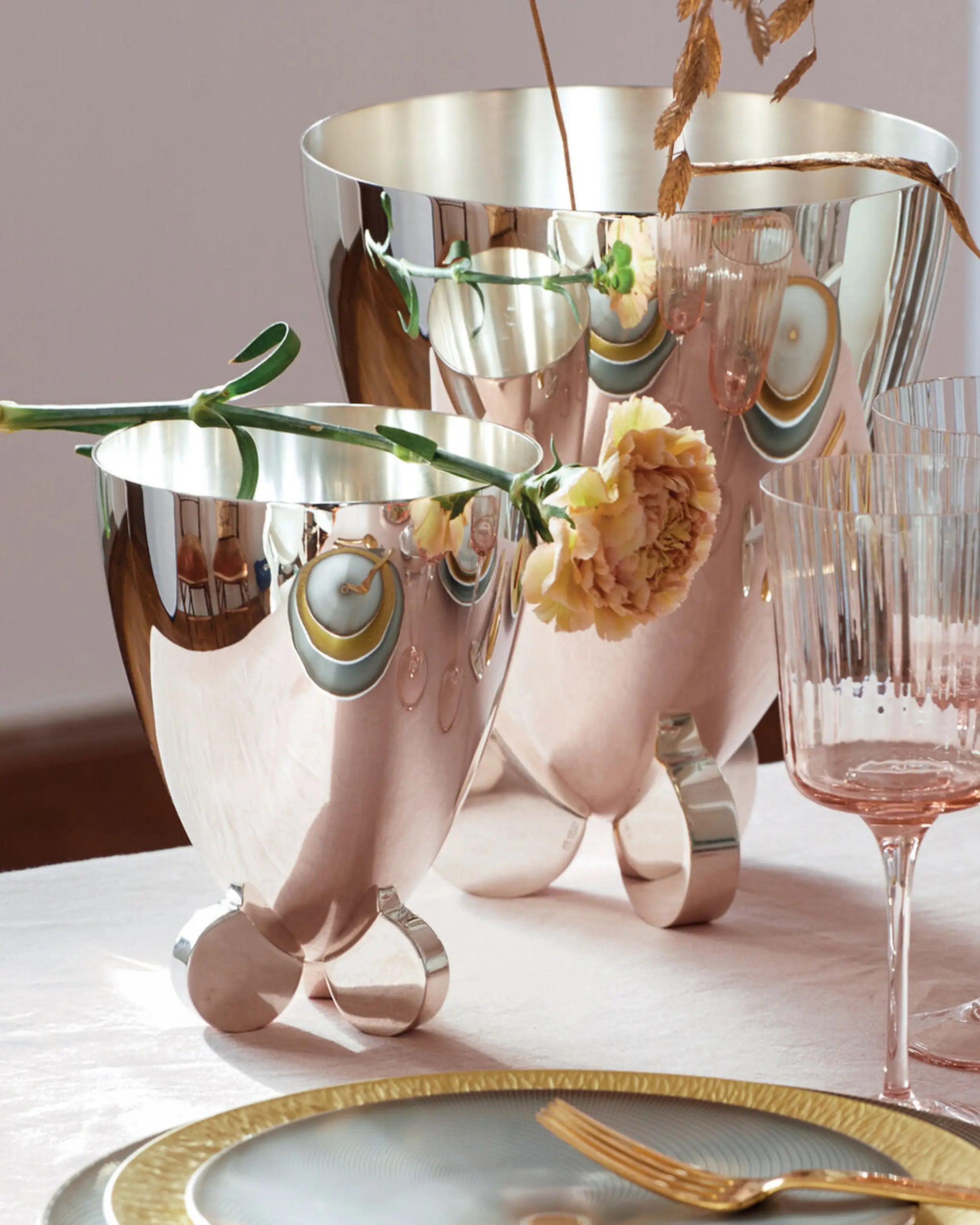 Baseando-se em mais de 150 anos de tradição em ourivesaria, Ercuis continua a reinterpretar os essenciais do luxo na mesa e no entretenimento. O Balde de gelo Ercuis Galet é uma expressão natural desta herança: fundindo função com forma poética e oferecendo um objeto distintivo para quem aprecia a beleza em cada detalhe.Balde de gelo Galet Ercuis prateado