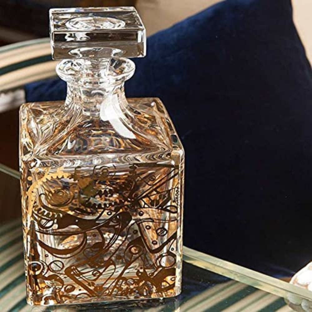 Decantador de uísque Cronos, concebido e produzido pela Vista Alegre . Cronos é um decantador elegante e moderno com um padrão decorativo que lembra as engrenagens dos relógios, um símbolo da passagem do tempo. Perfeito como uma ideia de presente para os amantes de uísque e bebidas destiladas, Cronos é um decantador de design luxuoso e único: uma verdadeira obra de arte.