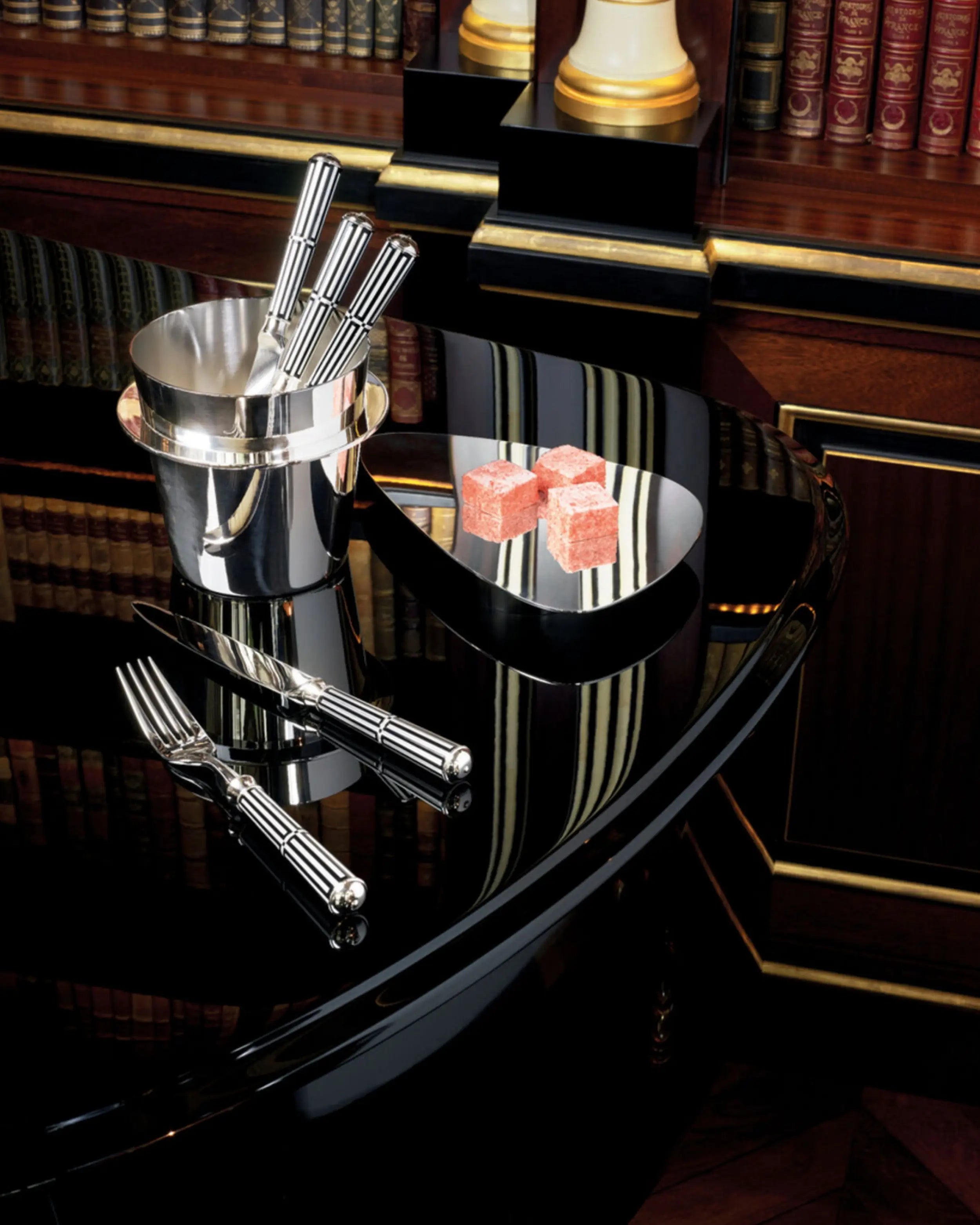A elegância francesa intemporal encontra o renomado artesanato artesanal em talheres, tabuleiros e acessórios de mesa icónicos da Maison Ercuis.