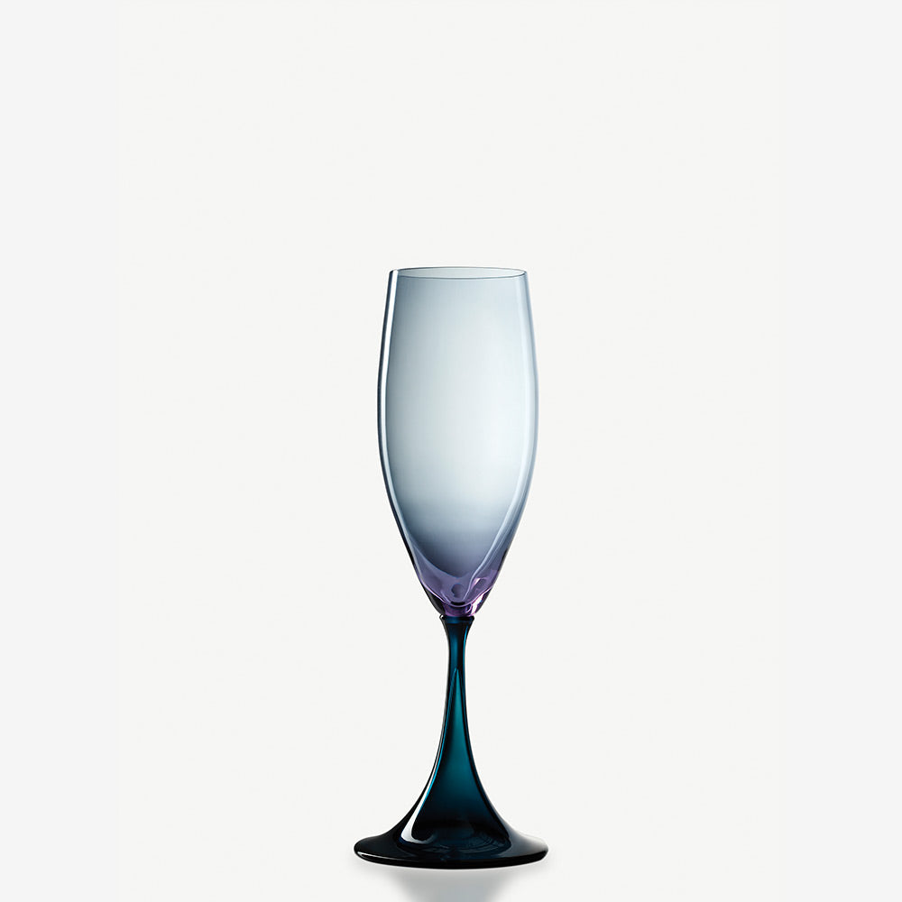 A coleção Mille e una Notte, criada por Stefano Marcato para Nason Moretti , marca italiana líder na produção de copos, vasos e objetos de design feitos à mão em vidro Murano, é inspirada nas atmosferas oníricas do romance Mille e una Notte. O cálice de champanhe Mille e una Notte pêssego e azul air force é ideal para degustar e realçar vinhos de champanhe. Os copos artesanais se tornam um objeto com um design único e inimitável, o elemento perfeito para surpreender seus convidados.