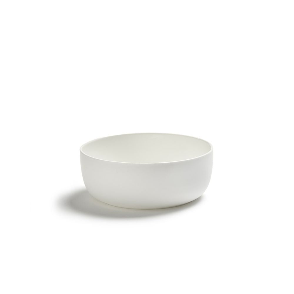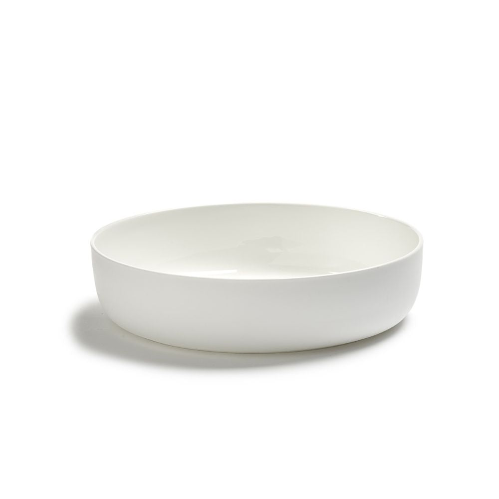 True to the Dutch designer’s balanced proportions, the low profile enhances plating control and tableside comfort. The gently curved wall contains dressings and reductions while keeping compositions neat and readable under dining-room light. In collaboration with Serax, Piet Boon translates minimal gestures into generous function: a rim that feels calm in the hand, a base that stacks efficiently, and a diameter logic that scales across courses. For buyers evaluating options—often searching a white stoneware bowl look—this model delivers the same crisp clarity with the elevated finesse and longevity of porcelain.