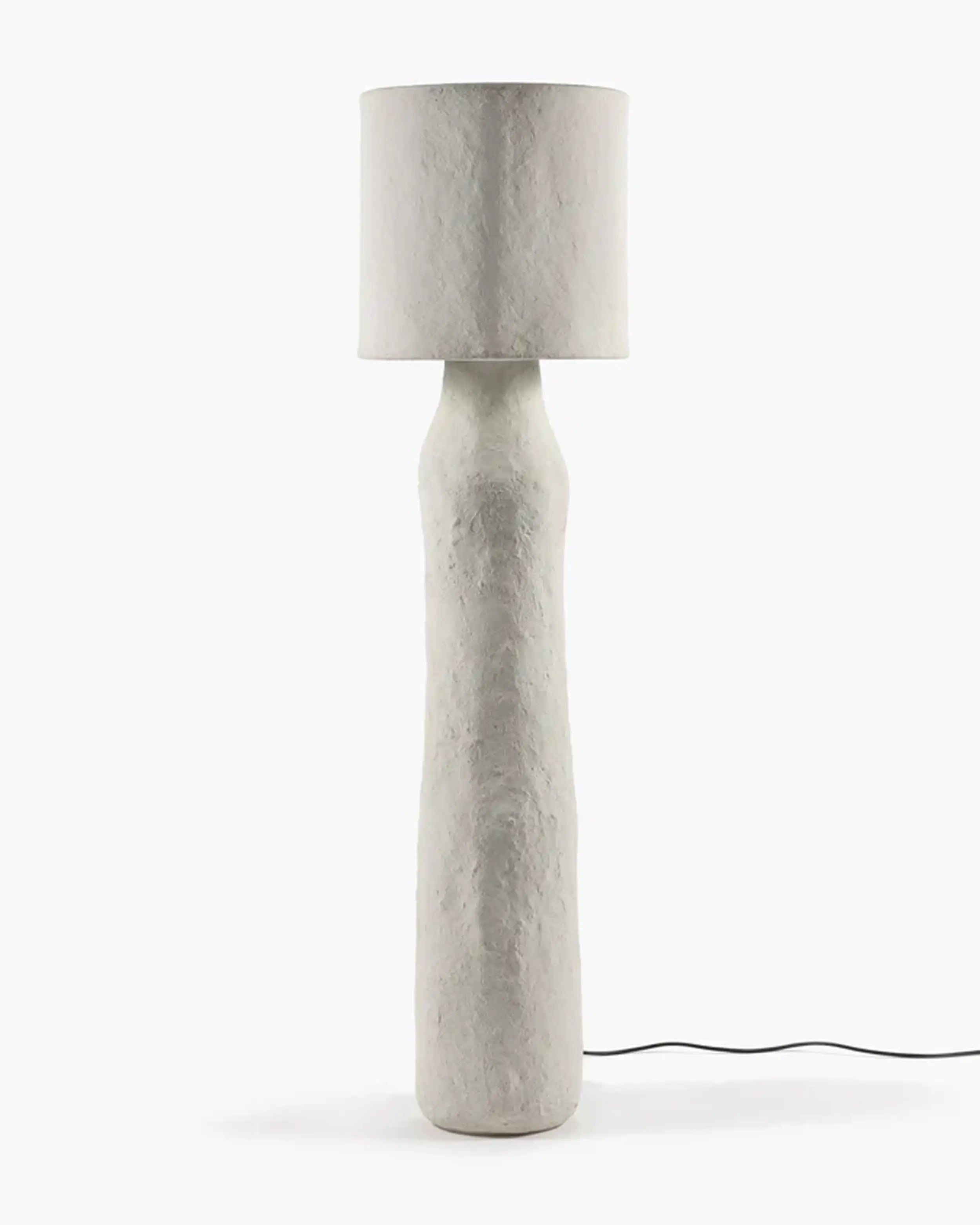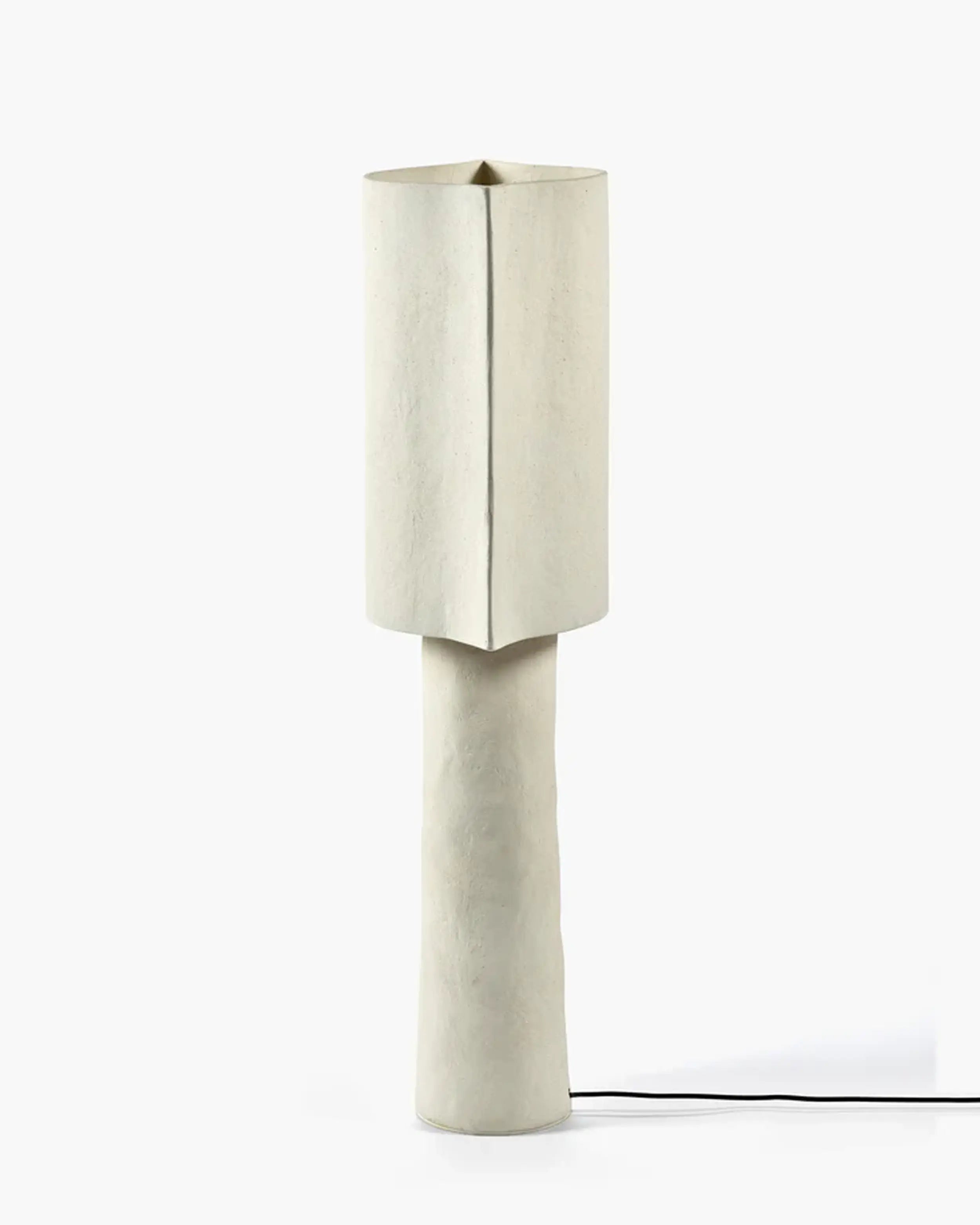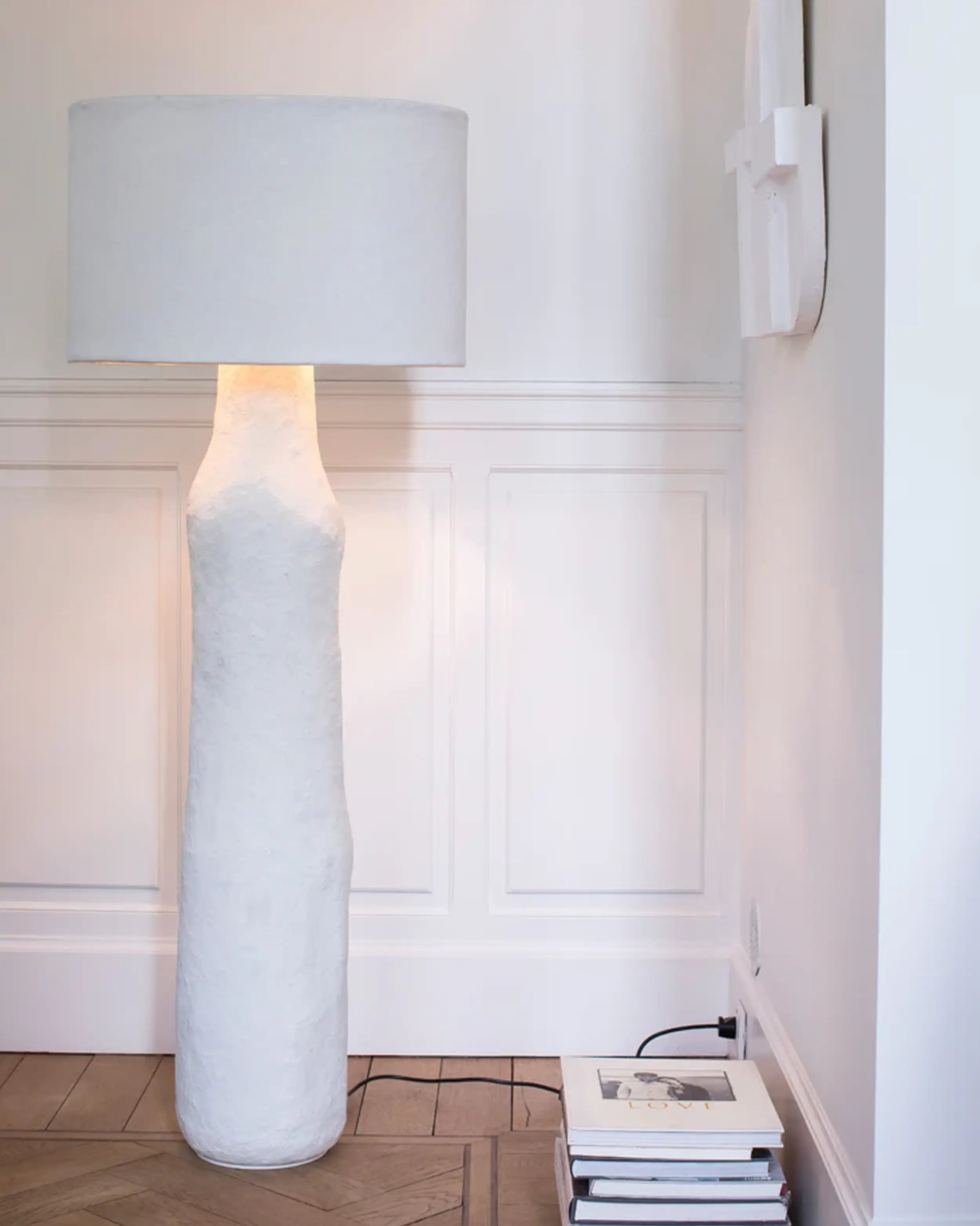Descubra a decoração minimalista de Marie Michielssen, incluindo o icônico abajur Earth e a mesa lateral Pawn para espaços modernos.