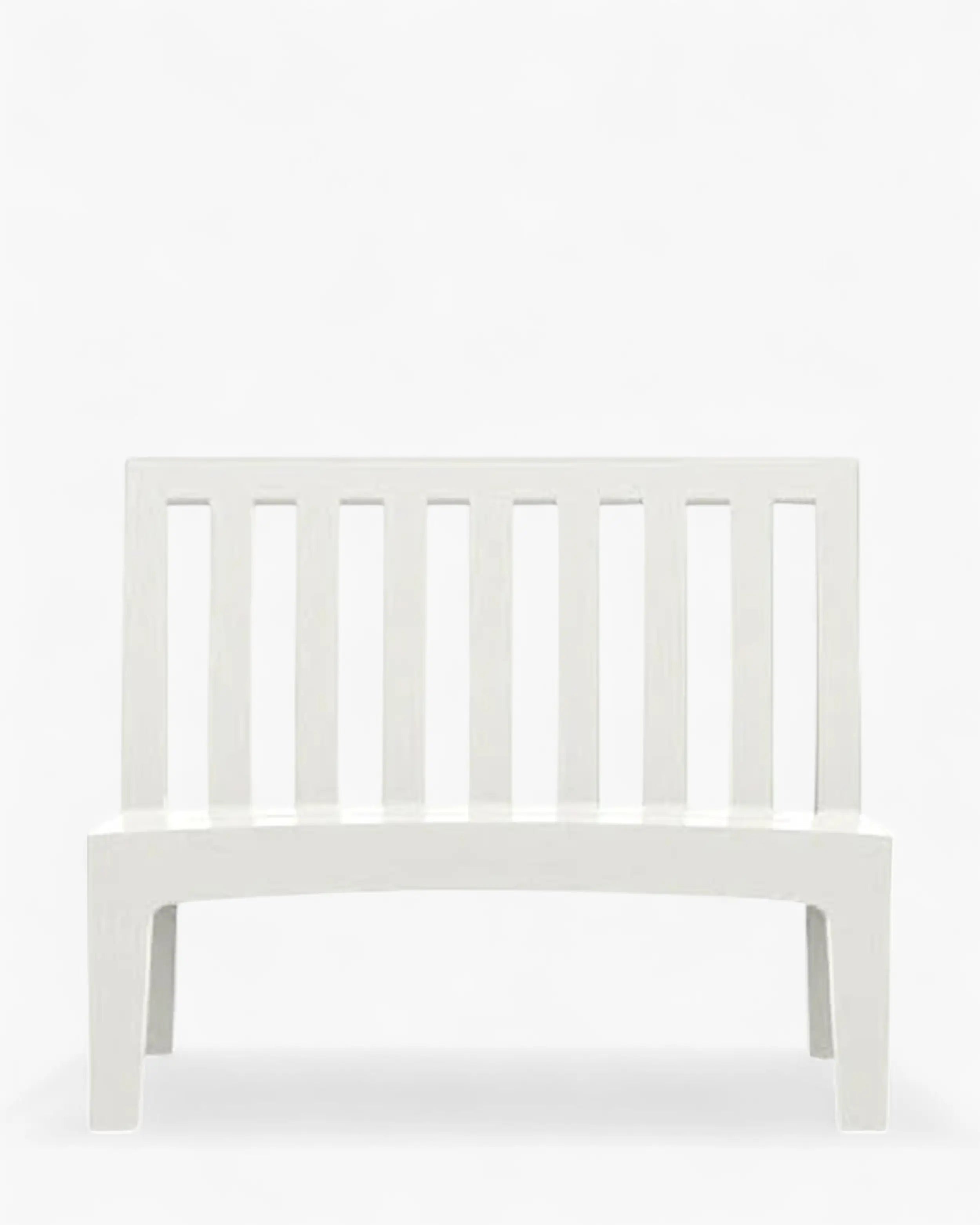 Disponível em branco e vermelho, cada versão comunica um estado de espírito diferente. O branco enfatiza o minimalismo e a pureza arquitetónica, perfeito para terraços ou espaços interiores serenos. O vermelho traz energia e impacto visual, transformando o elegante assento de jardim num ponto focal marcante para pátios públicos ou hotéis boutique. O Romeo combina naturalmente com a Serralunga designer lighting e com os sculptural planters, realçando a harmonia dos espaços exteriores.