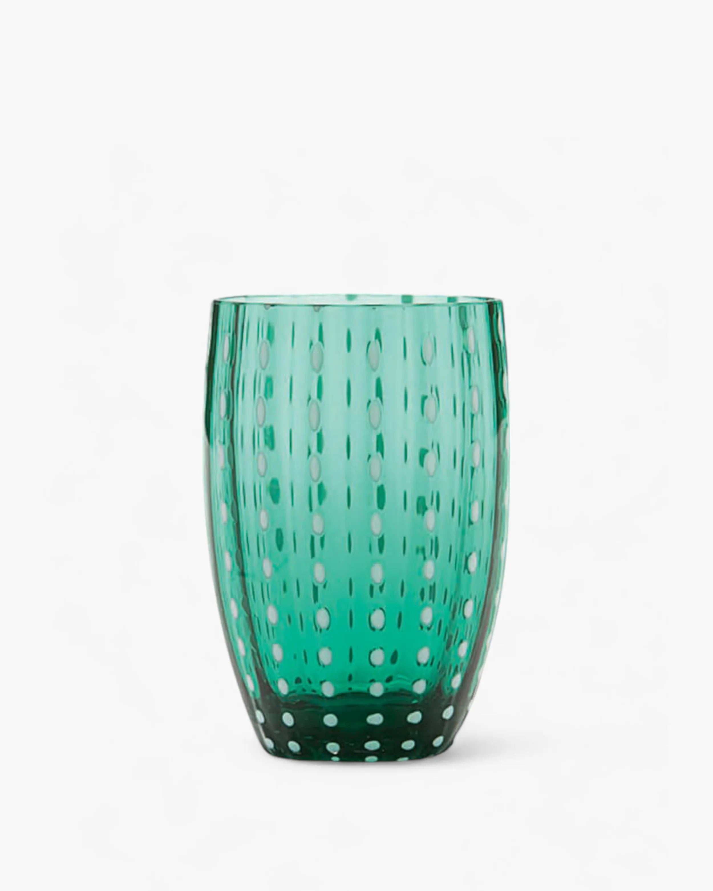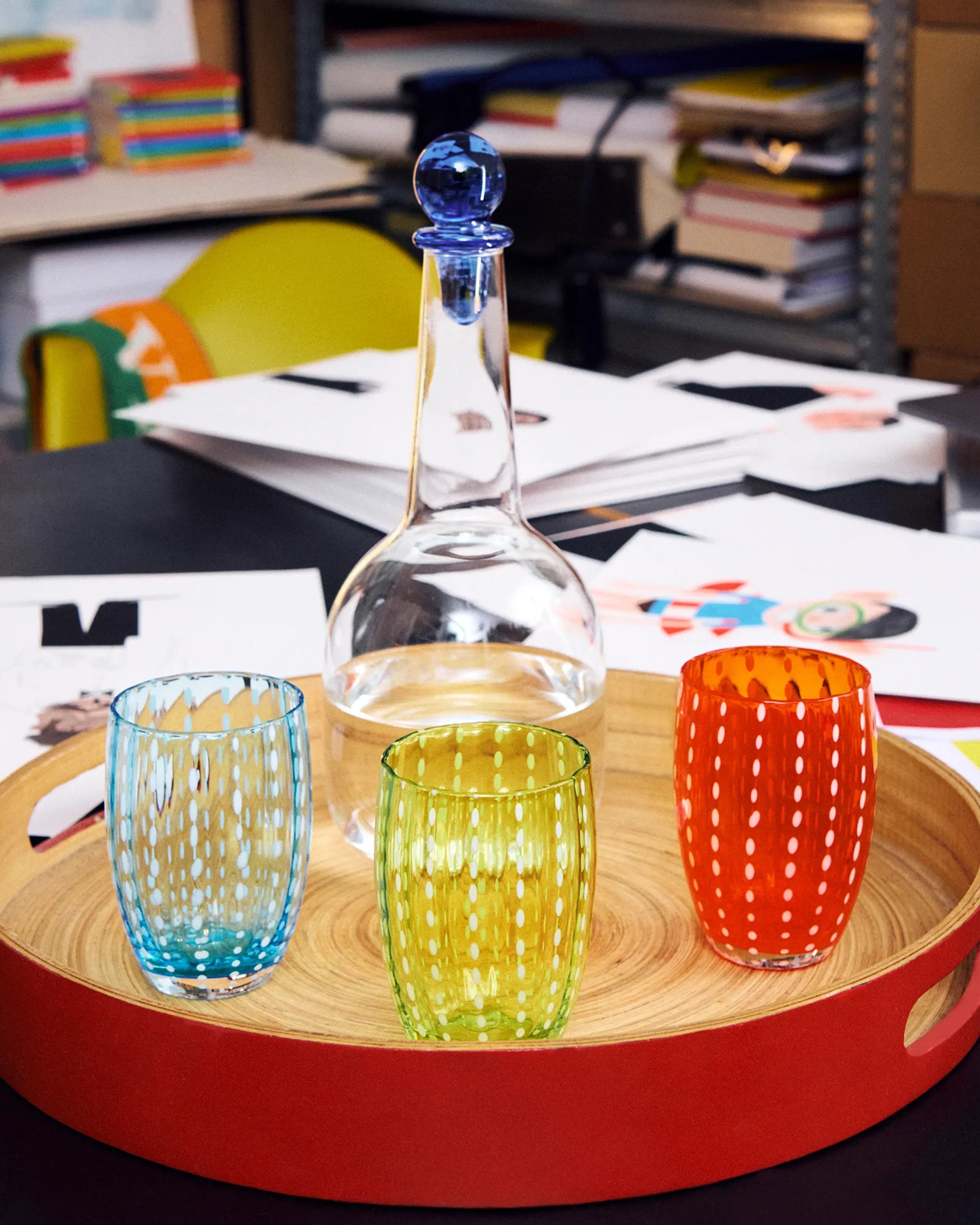 Cada copo Zafferano Perle é meticulosamente feito à mão, conferindo a cada peça um carácter único. Fabricados em vidro colorido de alta qualidade, estes copos são resistentes ao choque térmico, tornando-os adequados para bebidas quentes e frias. Quer esteja a servir uma bebida refrescante num dia de verão ou a desfrutar de uma noite acolhedora com chá, este copo oferece beleza e praticidade para qualquer ocasião. O artesanato do vidro Federico De Majo Zafferano garante que cada peça combina estilo e durabilidade.