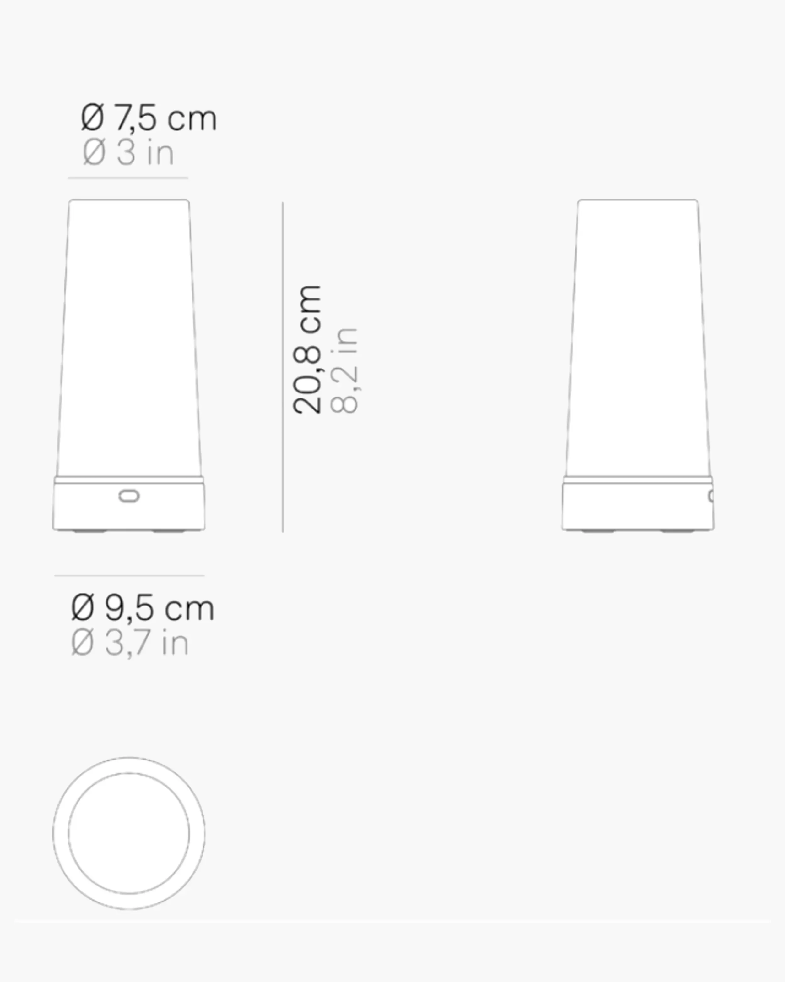 Fabricada em alumínio durável, a Zafferano Soffio lâmpada portátil é perfeita tanto para uso interior como exterior. A sua bateria de lítio recarregável e substituível oferece 10 a 11 horas de luz contínua, recarregando-se totalmente em apenas 3 a 4 horas a 2A. Uma base de carregamento por contacto (Tipo C) está incluída, enquanto o carregador deve ser adquirido separadamente. Com as suas linhas limpas e design intuitivo, esta lâmpada adapta-se facilmente aos estilos de vida modernos.