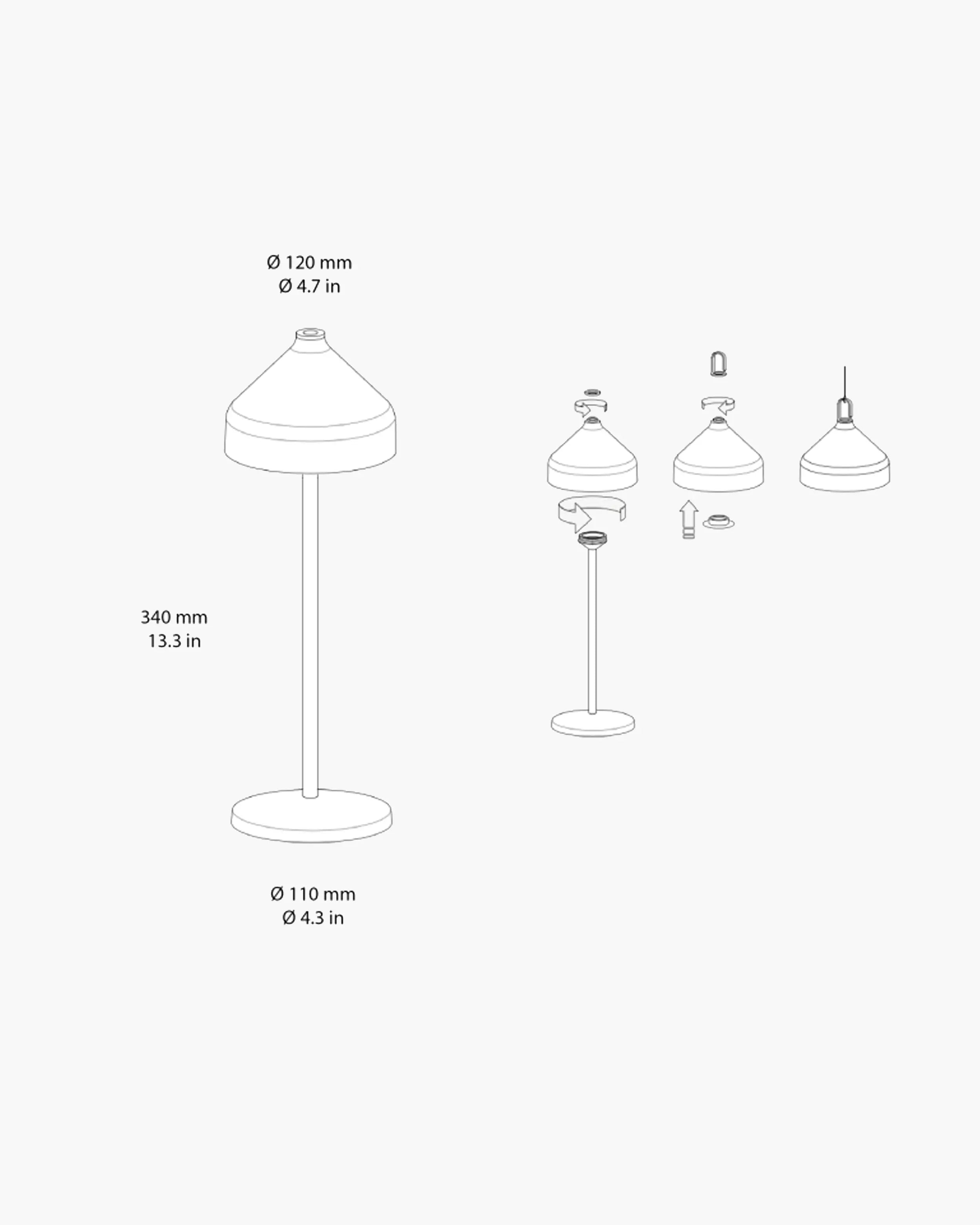 Ajuste as suas configurações de iluminação com facilidade usando o controlo tátil integrado. A lamparina Amelie está equipada com um conveniente botão táctil localizado na parte superior da cabeça, permitindo que você ligue ou desligue a lâmpada, modifique o brilho e selecione entre várias temperaturas de cor para se adequar às suas preferências. Esta interface intuitiva torna simples alcançar a ambiência desejada, destacando-se entre outras opções de Zafferano. Seja para um jantar aconchegante ou uma reunião ao ar livre, esta lâmpada adapta-se às suas necessidades sem esforço.