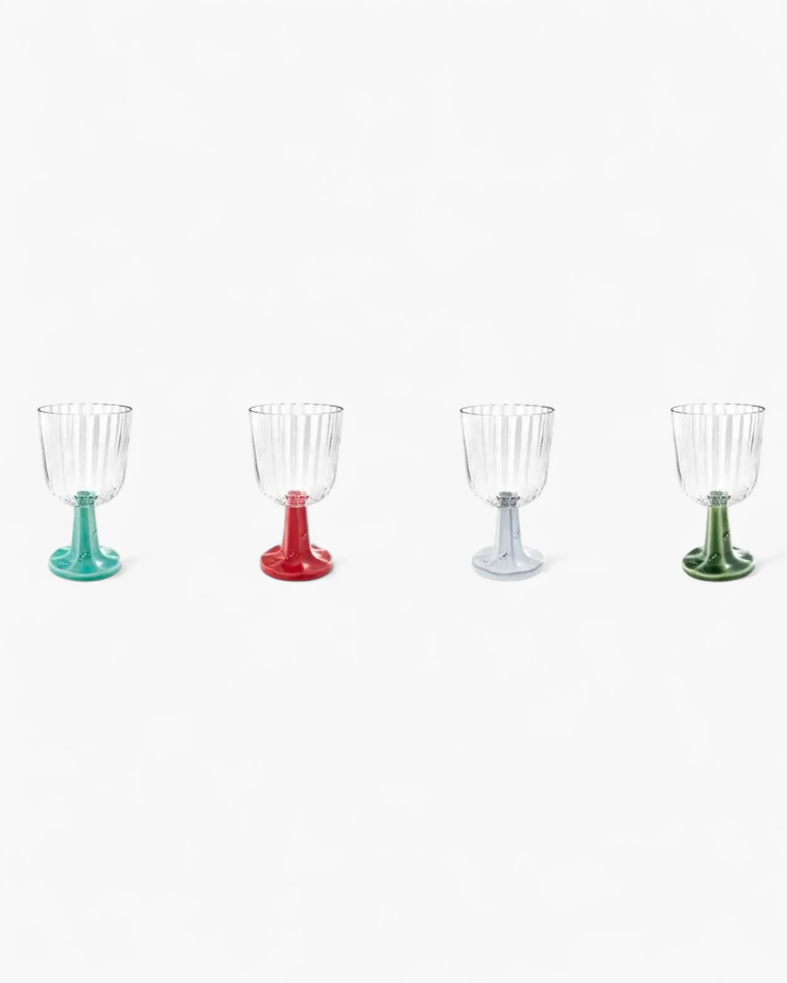 Pertencente à categoria de stem glasses, esta peça é feita em terracota e acabada com vidrados vivos que tornam cada gole numa experiência visual. A textura em relevo proporciona uma pega segura e transforma cada goblet num objeto com carácter. Disponível em quatro cores: Verde, Branco Antigo, Verde Menta e Vermelho, adapta-se facilmente a diferentes estados de espírito, desde encontros descontraídos de verão a salas de jantar formais. Os anfitriões gostam de misturar tons para contrastes arrojados ou de criar um conjunto monocromático para um efeito arquitetónico.