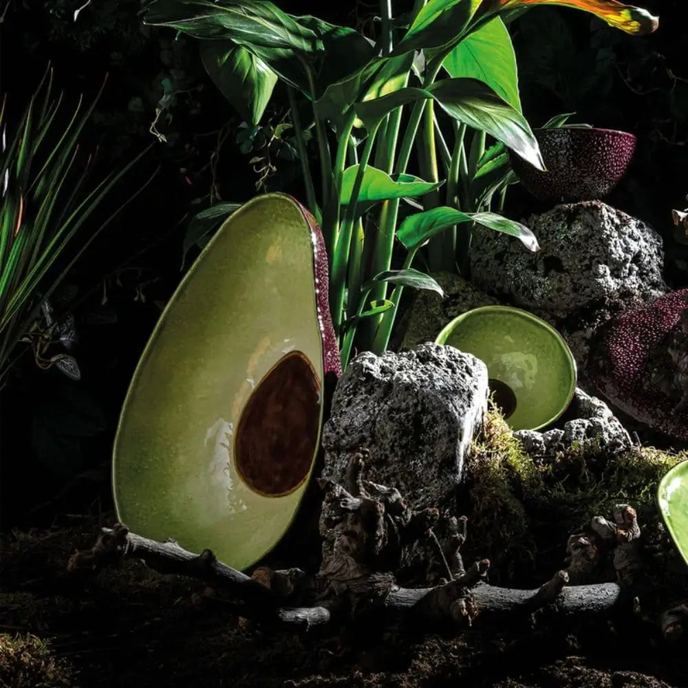 A taça da coleção Tropical Fruits apresenta uma série de designs marcantes: Maracujá, Abacate e Coco, cada um celebrando um sabor e forma tropical diferente. O Maracujá encanta com o seu tom roxo intenso e detalhes dourados na polpa; o Abacate surpreende com verdes orgânicos e textura esculpida; o Coco exala um tom sereno e cremoso que traz calma a mesas vibrantes. Juntos, criam uma alegre sinfonia de cor e padrão que anima qualquer experiência à mesa, fundindo a beleza da natureza com o design moderno.