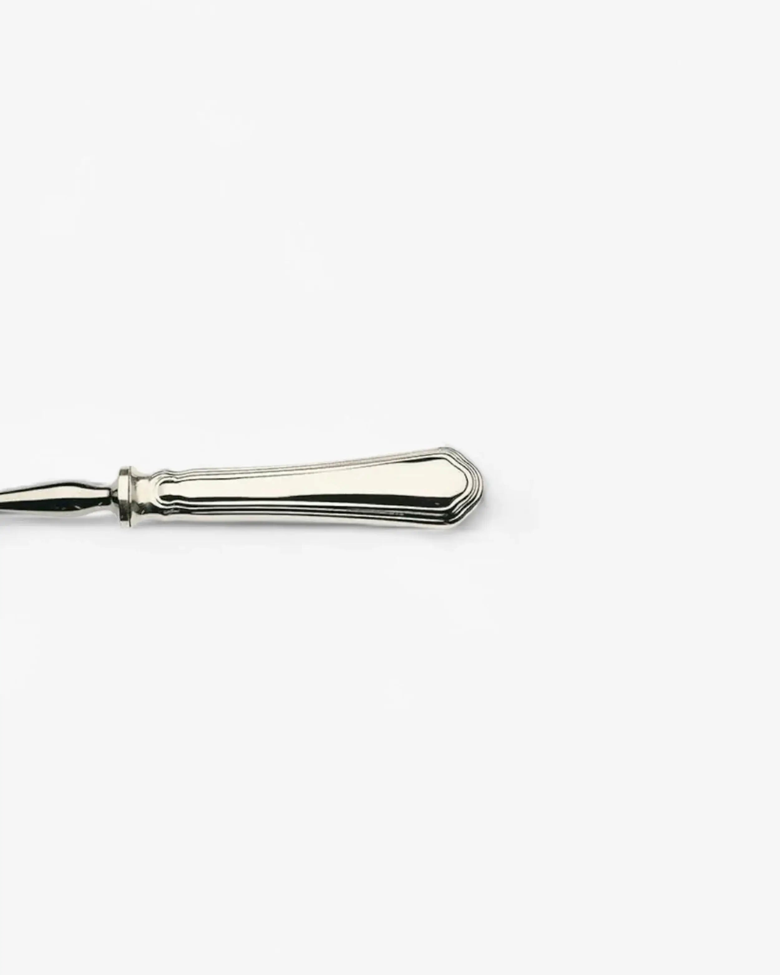Construído em prata de alta qualidade Alpacca, o garfo de esculpir serbelloni broggi é feito para durar. O seu acabamento prateado resiste à oxidação e ao desgaste, garantindo que mantenha o seu brilho deslumbrante mesmo com o uso regular. Projetado para uso alimentar, este garfo é fácil de limpar e manter, combinando luxo com praticidade. É uma adição indispensável à sua Knives & Co coleção pela sua fiabilidade e beleza.