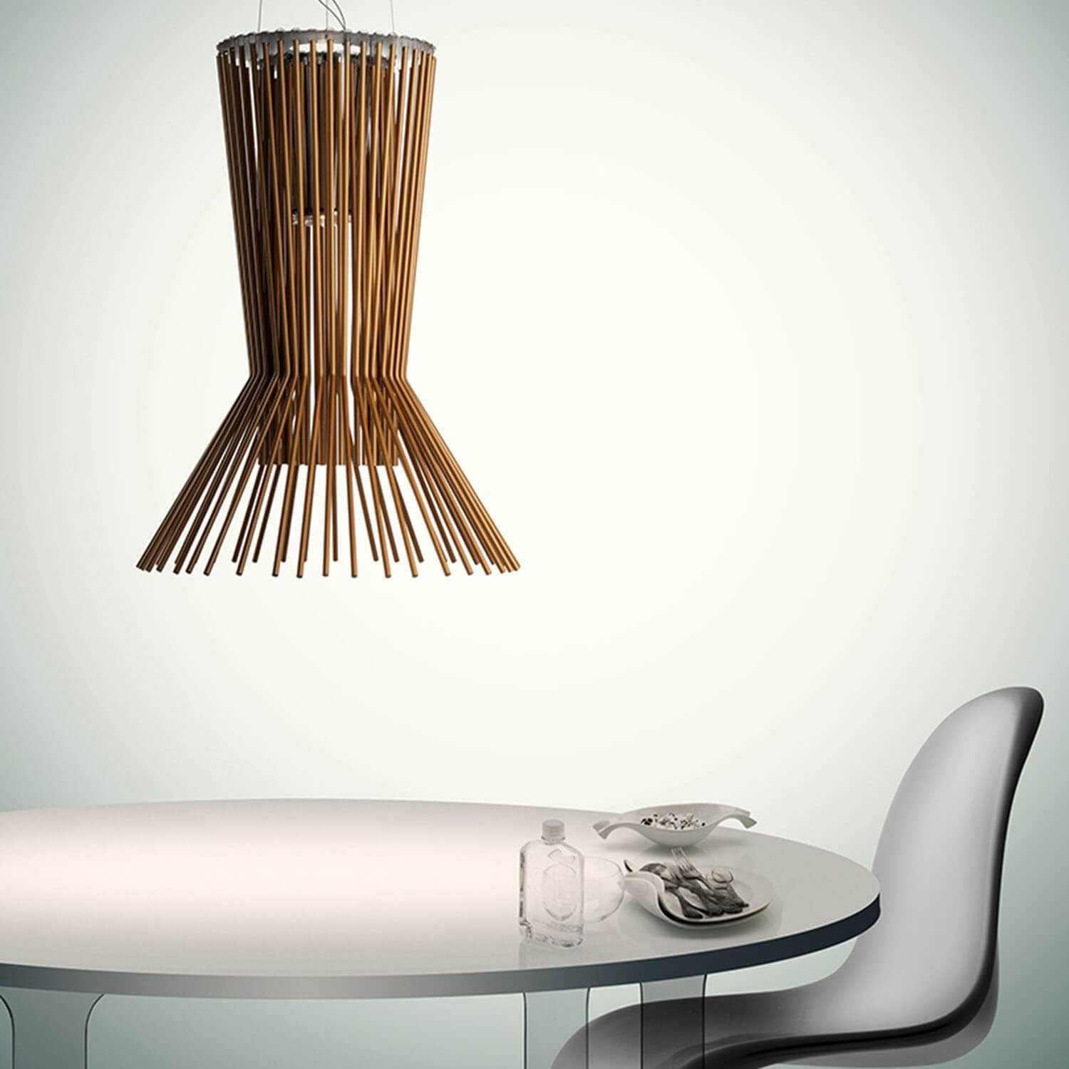 Allegretto Vivace cobre é uma luminária de suspensão projetada pelo Atelier Oï para Foscarini , com um estilo único e dinâmico. Allegretto, que faz parte do projeto Allegro, é feita com linhas metálicas que circundam a fonte de luz, criando reflexos sugestivos nas paredes. A luminária Allegretto Vivace é um símbolo de charme e harmonia e imediatamente captura a atenção em qualquer ambiente.