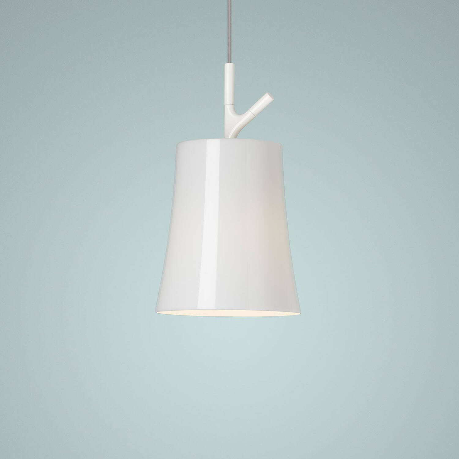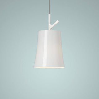 A pequena luminária suspensa Birdie, projetada pelos designers Ludovica e Roberto Palomba para Foscarini , é inspirada no abajur clássico com um toque moderno. A luminária emite uma luz difusa e voltada para baixo, para criar um jogo delicado e elegante de luz e sombra no espaço. O corpo da luminária Birdie apresenta um elemento projetado no formato de um galho pronto para receber um pássaro: uma associação gentil ao nome do objeto.