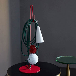 O abajur Foscarini Filo, aqui proposto na variante Koh-i-noor, é o resultado da criatividade do designer italiano Andrea Anastiasio. O abajur é composto por um abajur de porcelana e uma estrutura de metal cinza com um interruptor dimmer para modular a intensidade da luz. O nome é inspirado no longo fio original, revestido em tecido que dá ao abajur um estilo particular e irreverente. Filo é perfeito para dar um toque não convencional a qualquer cômodo da casa.