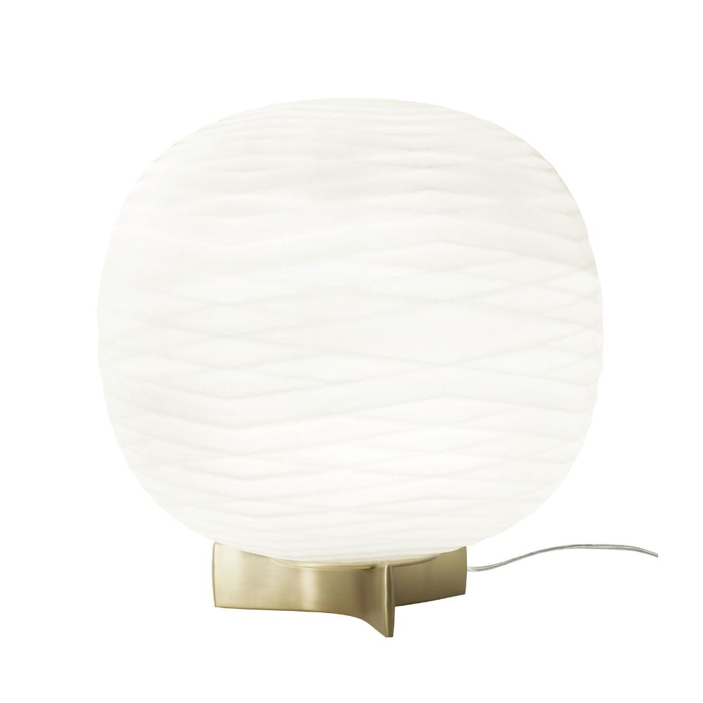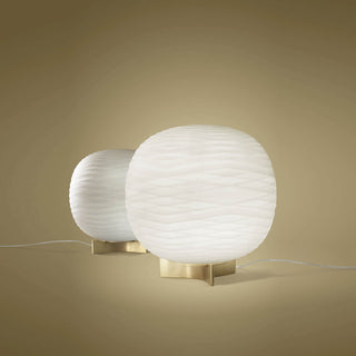 Luminária de mesa regulável Gem, criada pelos designers Ludovica e Roberto Palomba para Foscarini , é um elemento elegante em sua simplicidade. Gem é feita de vidro soprado e tem uma superfície com relevos irregulares e uma base em metal acetinado dourado. A luminária difunde uma luz delicada, perfeita para criar uma atmosfera acolhedora em todos os cômodos da casa.