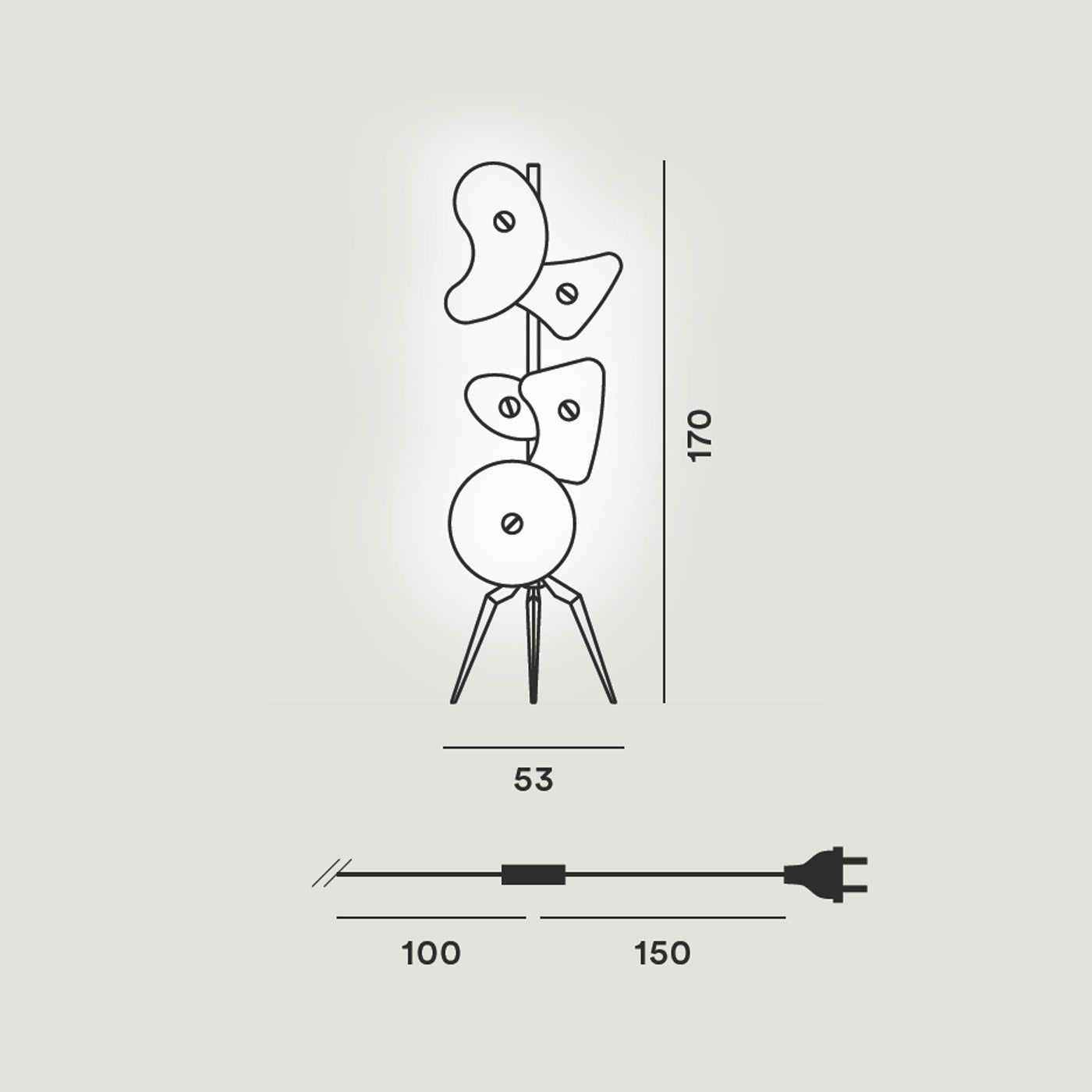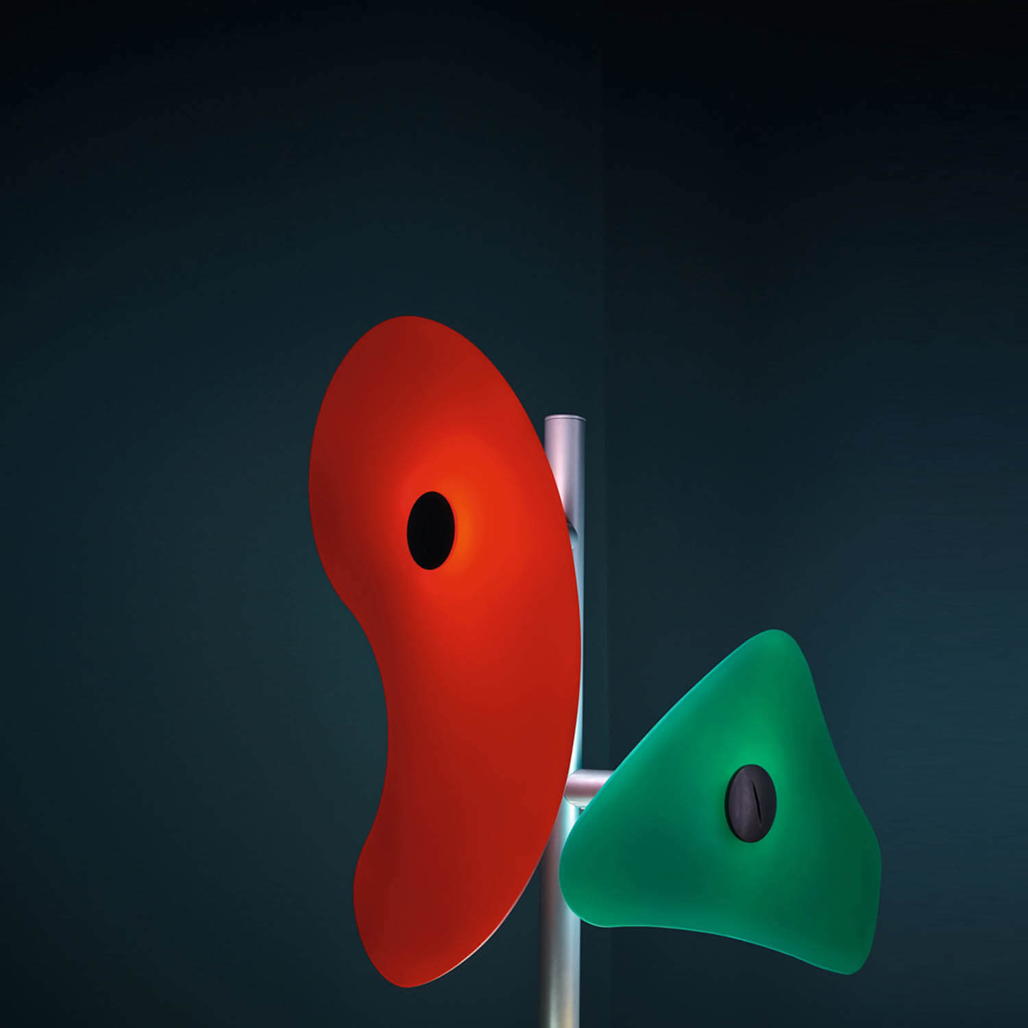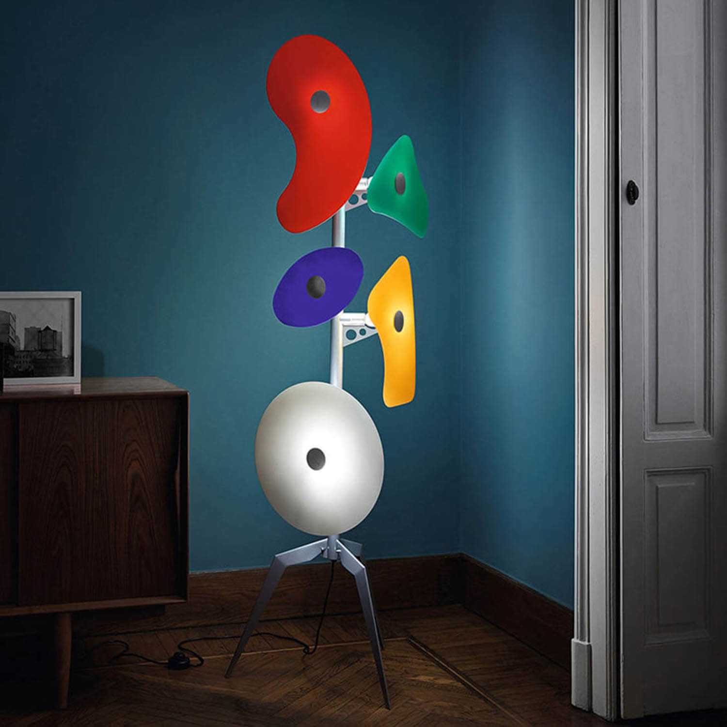 Orbital é a luminária de chão projetada por Ferruggio Laviani para Foscarini . Orbital está disponível em várias variantes: aqui apresentada em vidro serigrafado multicolorido e metal pintado. Orbital consiste em um tripé e uma haste de metal com cinco braços que sustentam os cinco difusores da Orbital, criando um objeto original e extravagante. Orbital da Foscarini é ideal para decorar, com um estilo único, espaços médios e grandes.